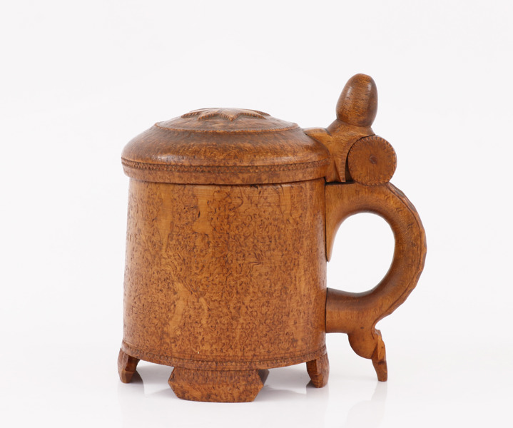 Masurbjörk. Med skuren dekor. Lock med dekor av stjärna.