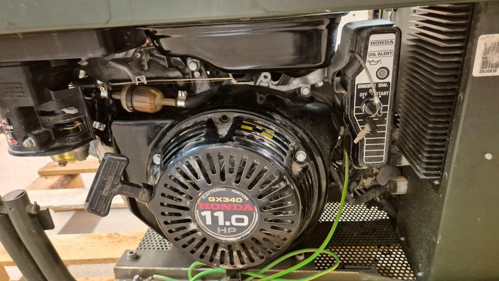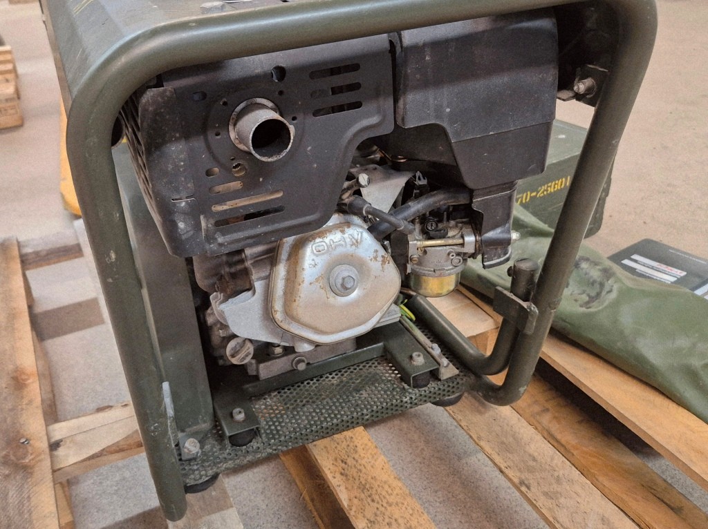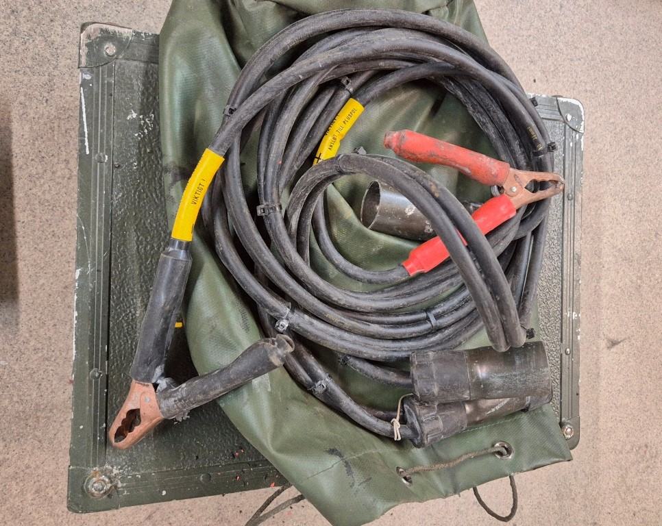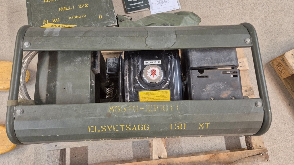 Svetsgenerator ESAB KHH 150 Military från svenska försvaret.Endast 7 timmar på mätaren.Provstartat och fungerande.Startbatteri saknas men startar lätt med dragstarten.Inkl NATO-kabel för batteriladdning (12/24V)Generatorn har även 230V-uttag för att driva den medföljande vinkelslipen. Inkl. tillbehörslåda med svetskablar och tillbehör.