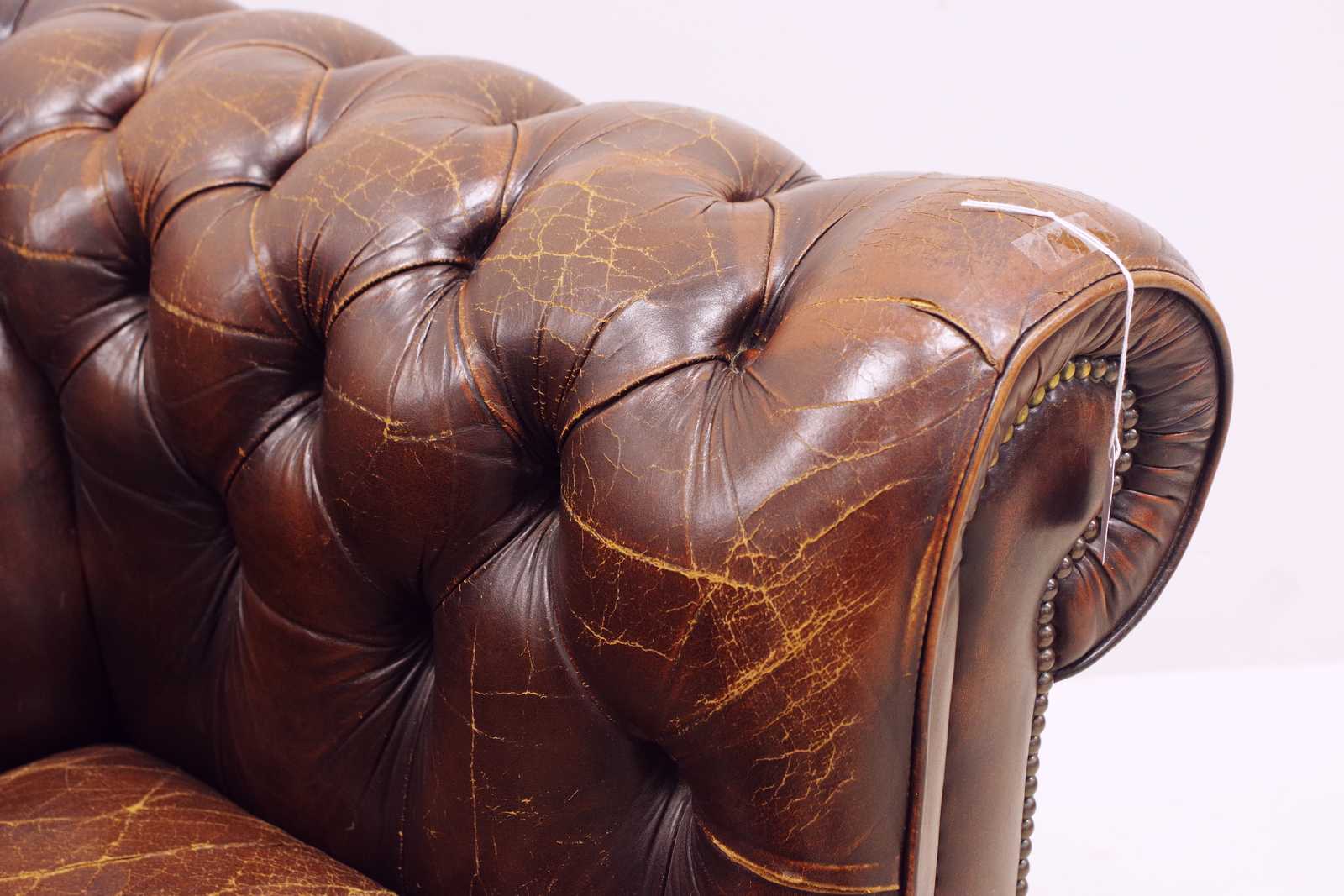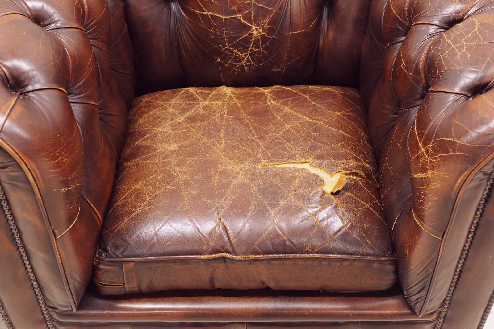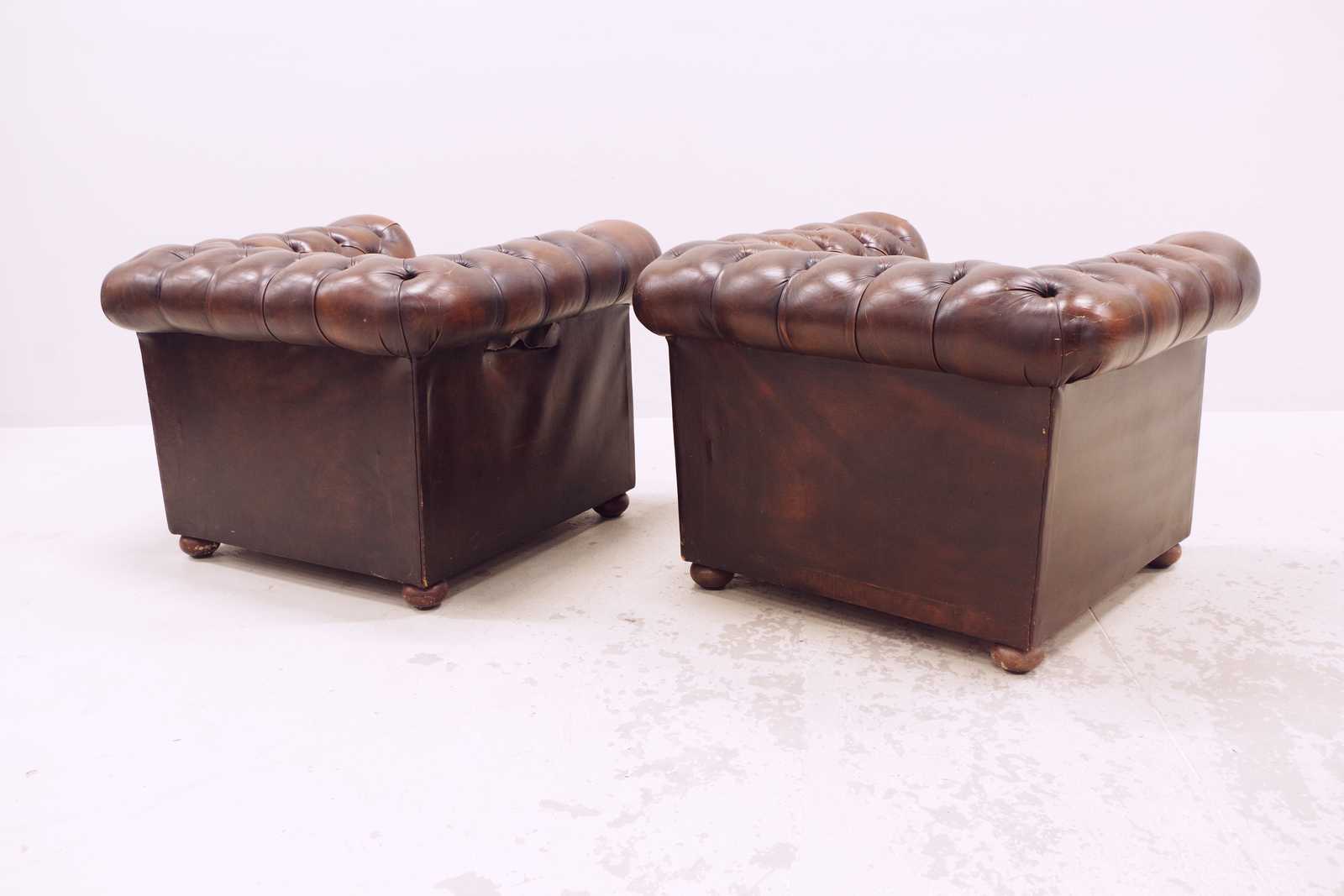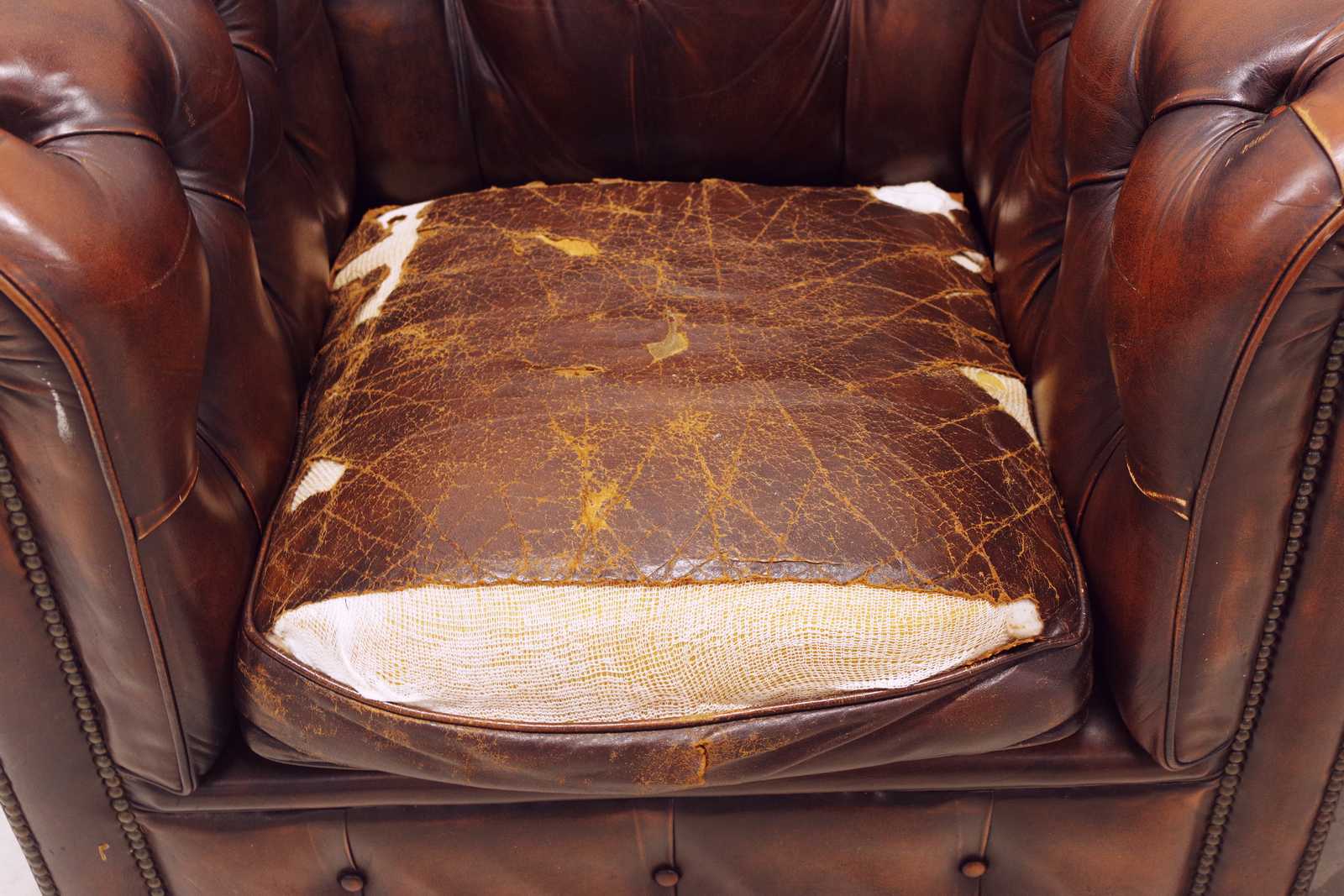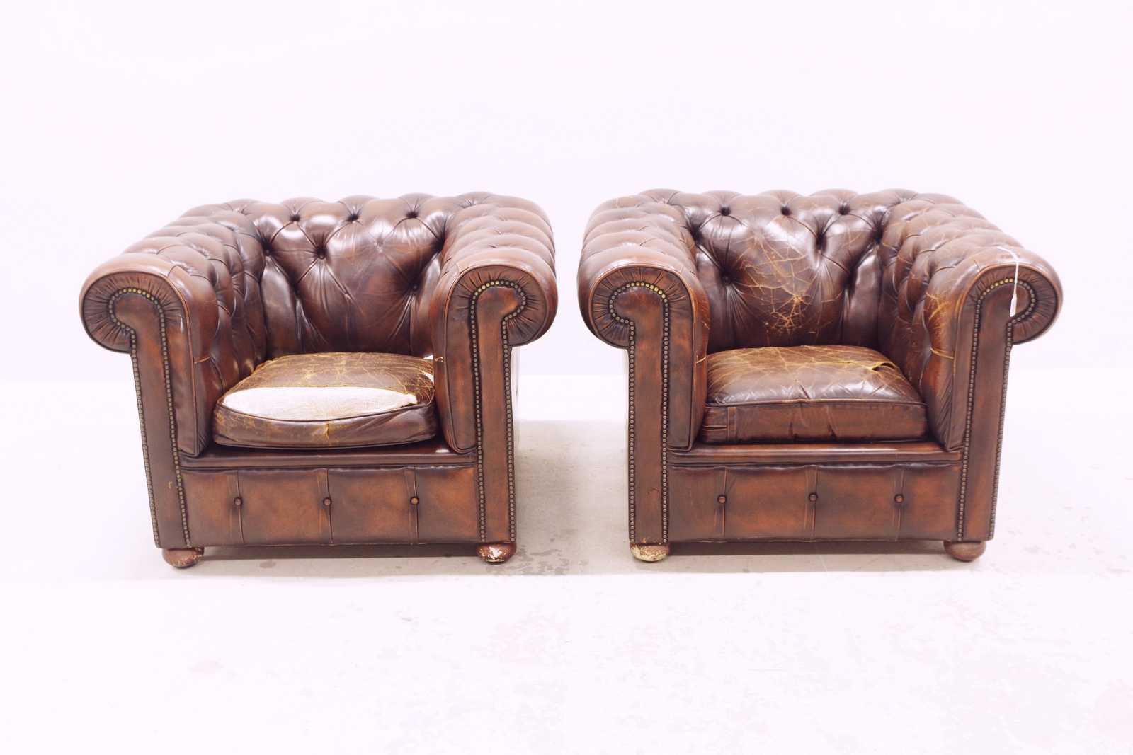 Bilder FÅTÖLJER paret, chesterfield, H: 70x 100x 85cm totalt (kraftigt slitage & skador av klädsel)