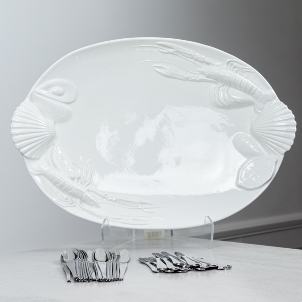 Serveringsfat för skaldjur, Italien, samt skaldjursbestick 16+18 st