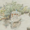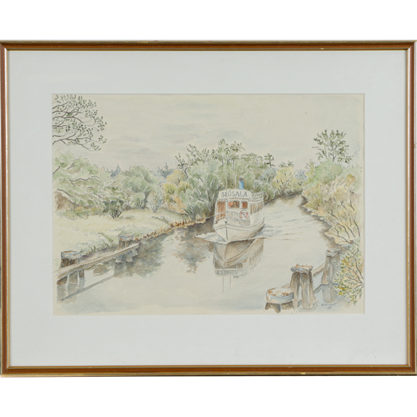 Bilder Margitt Ehrnst, "Sjösala trafikerar Fyrisån", akvarell, signerad