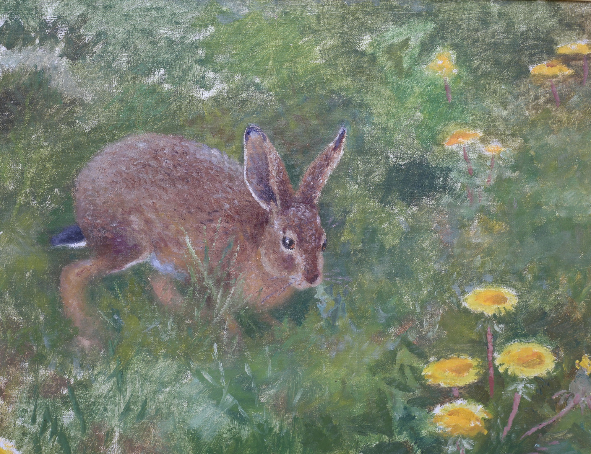 oljemålning på duk, hare i sommargräset, signerad 1941, 45x60, rammått 55x71