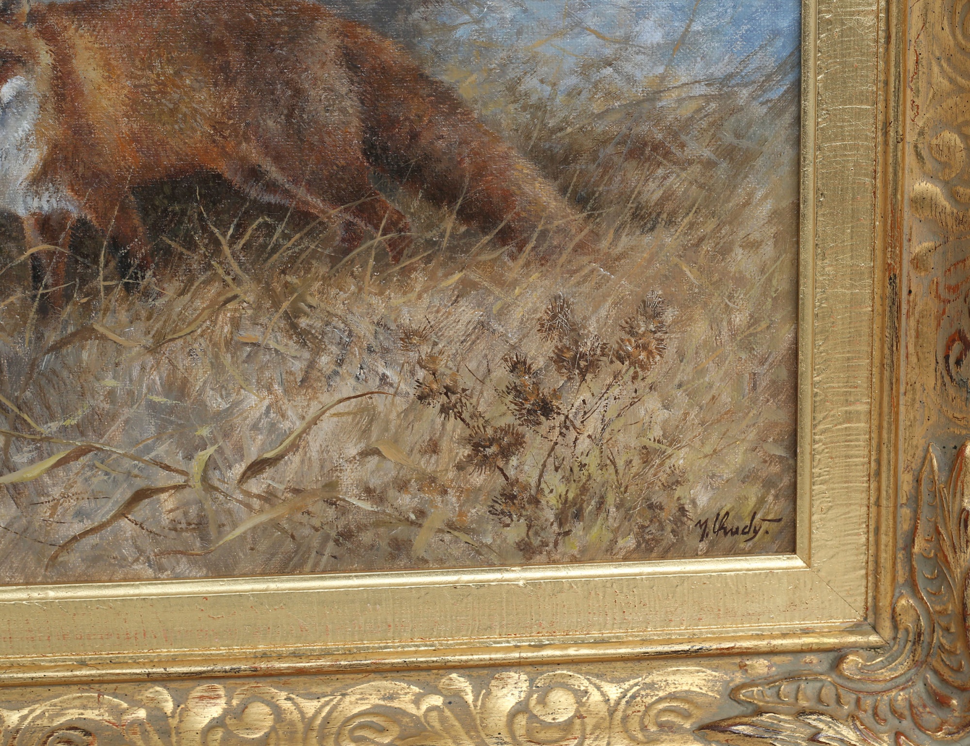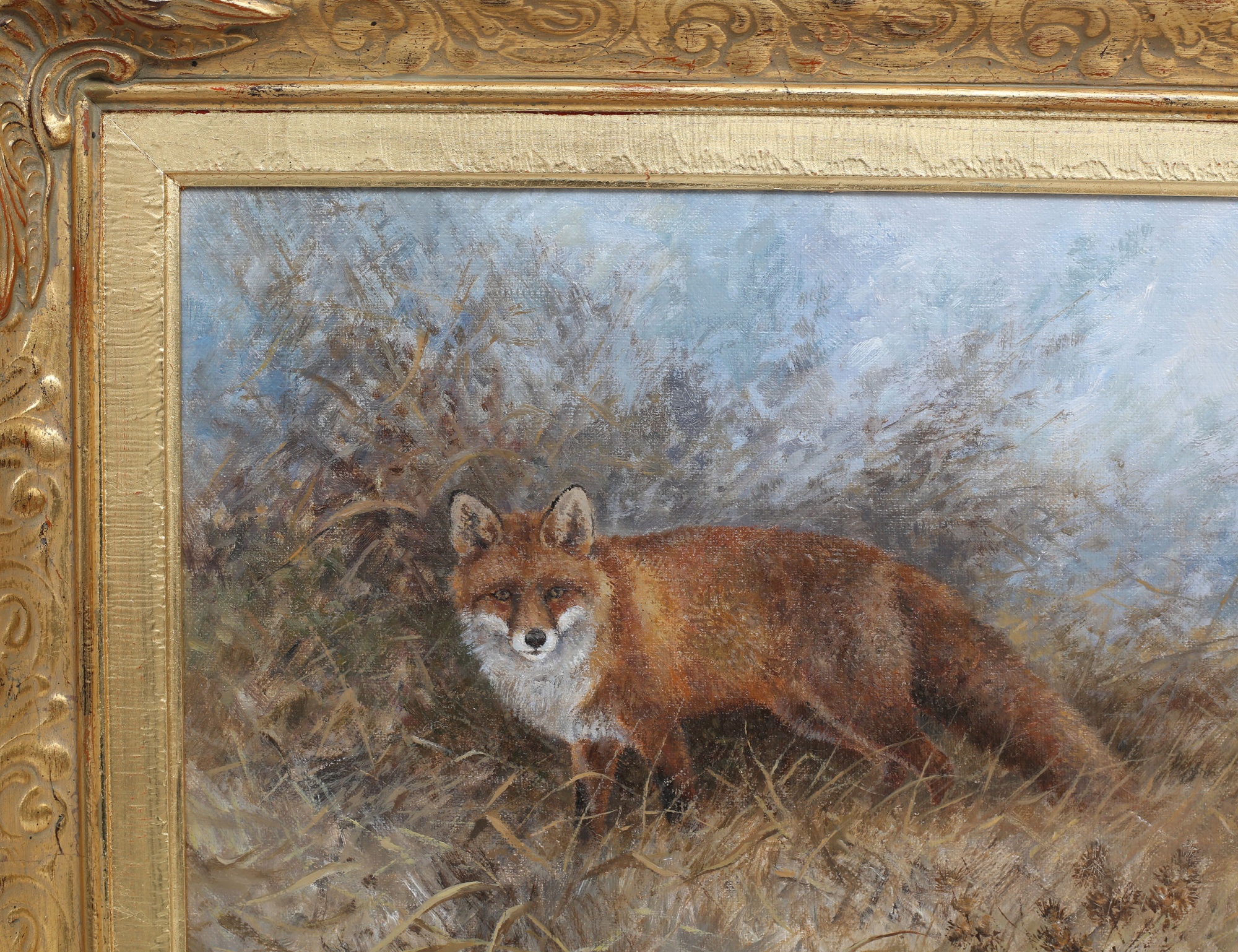oljemålning på duk, räv i höstlandskap, signerad, 33x41, rammått 50x57