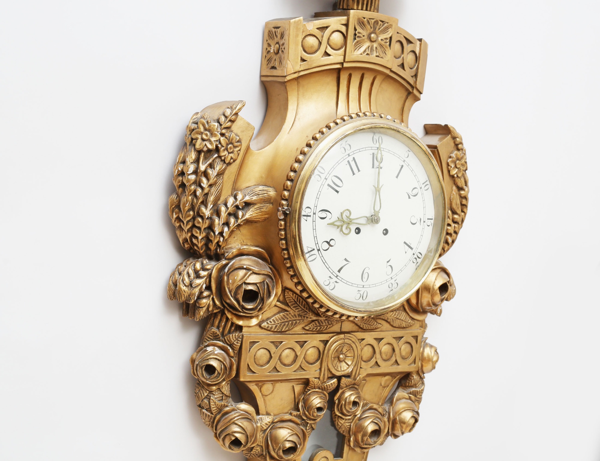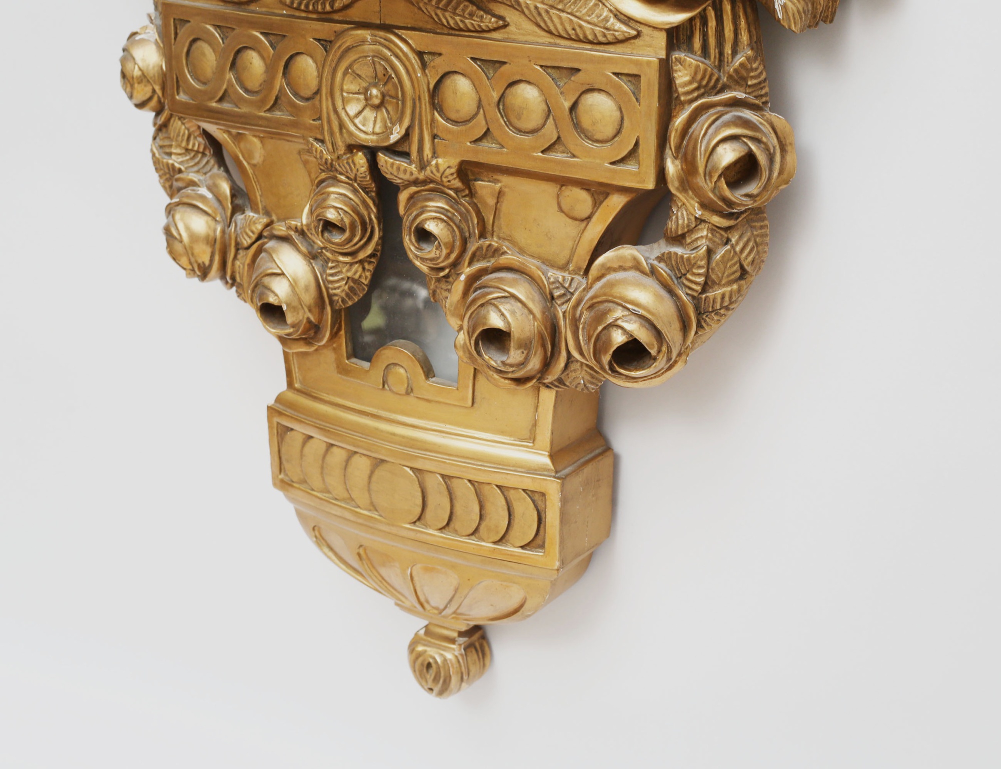 träskuren dekor av bla. rosor och axstrån, förgylld med slagmetall, nyckel finns, 105x48 (smärre ytskiktsbortfall)