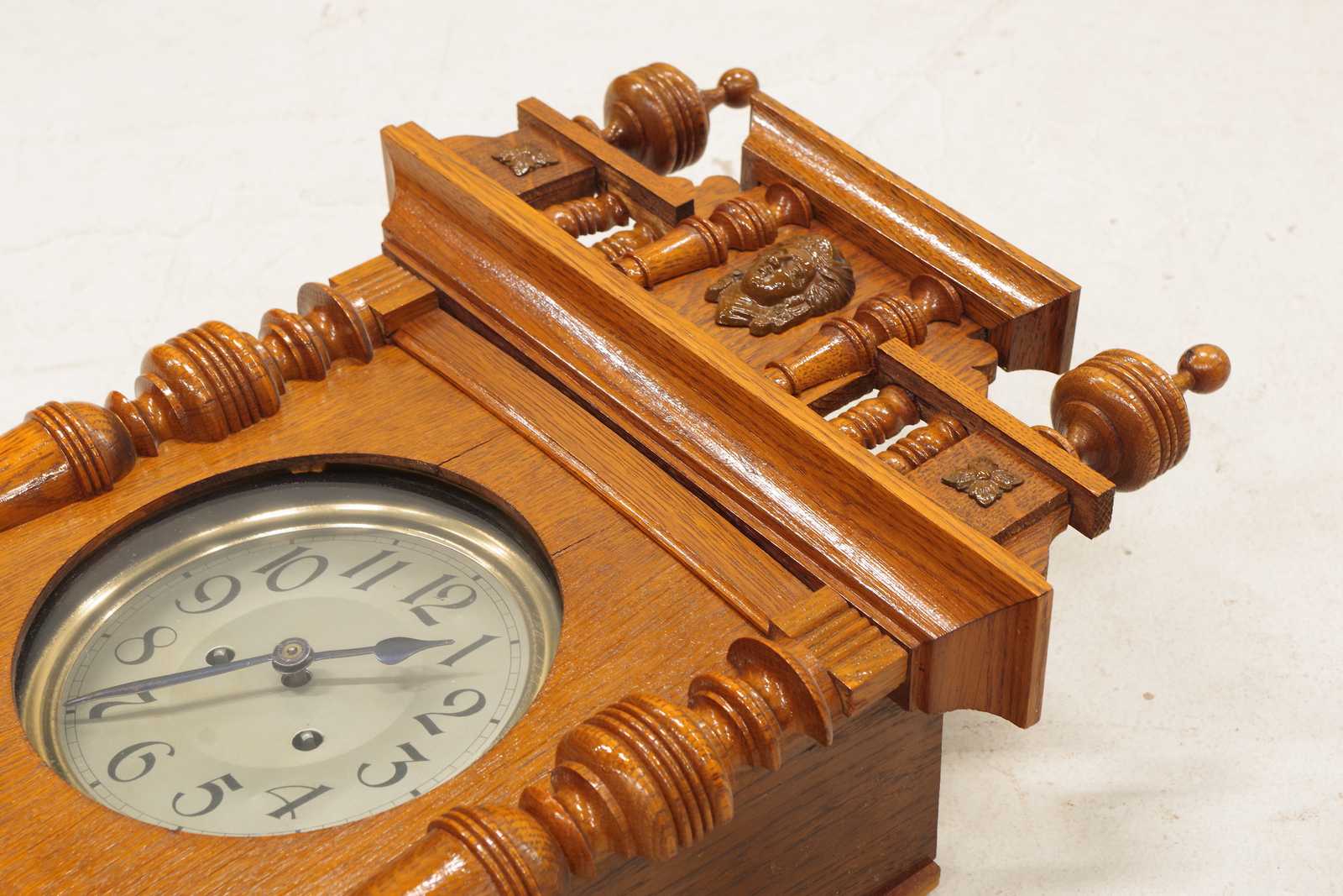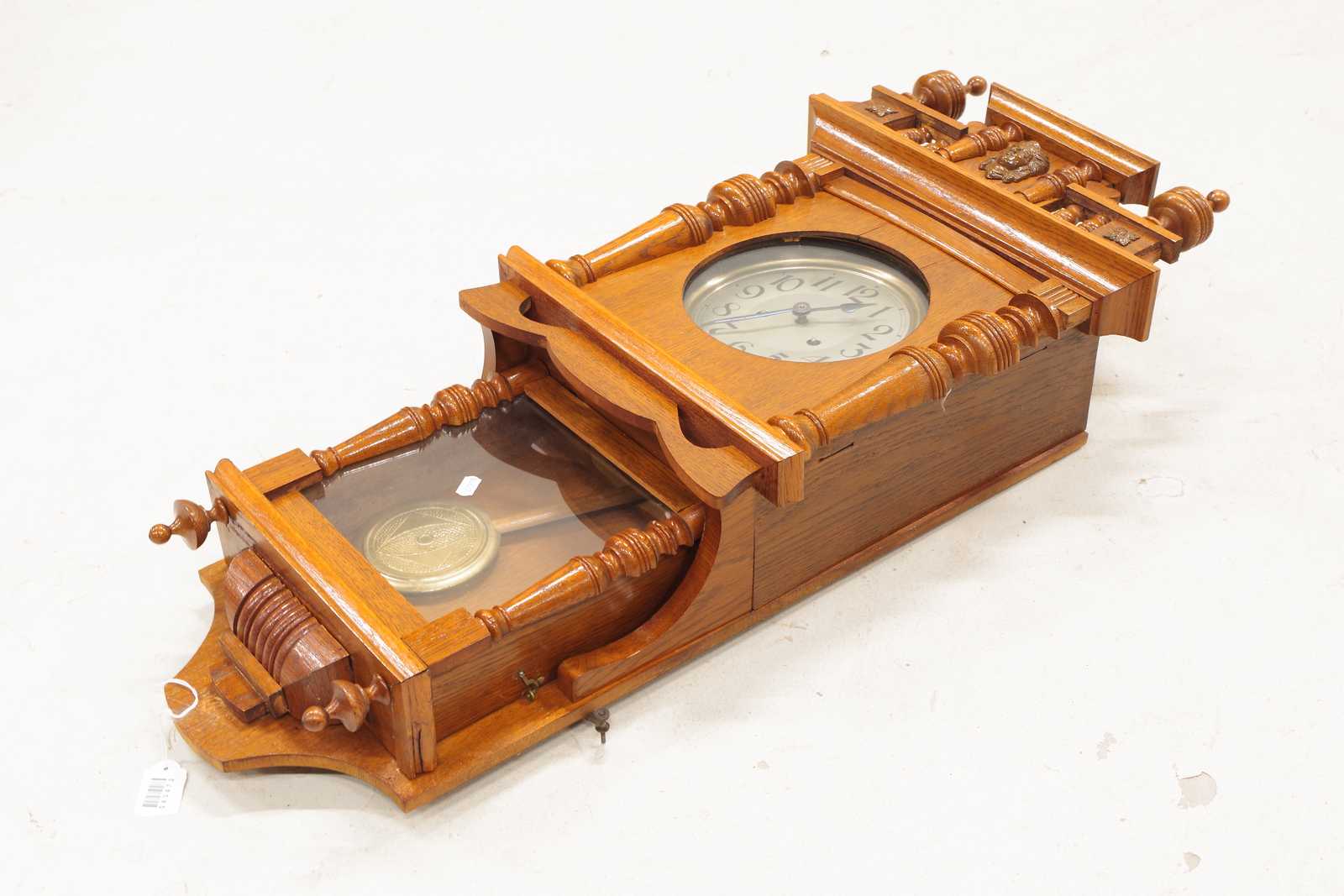 Bilder VÄGGKLOCKA i ek, 1900 talets första hälft. 37x85cm