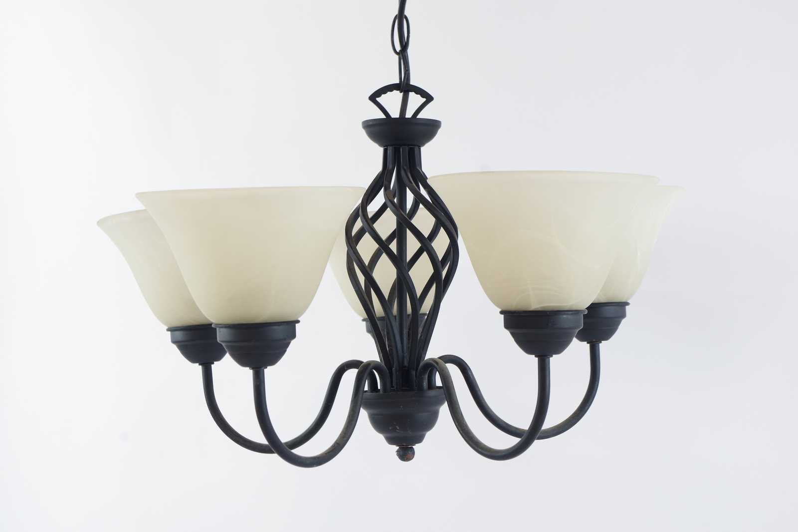 Bilder TAKLAMPA i metall, kupor i glas, 19-2000 tal. D:55cm