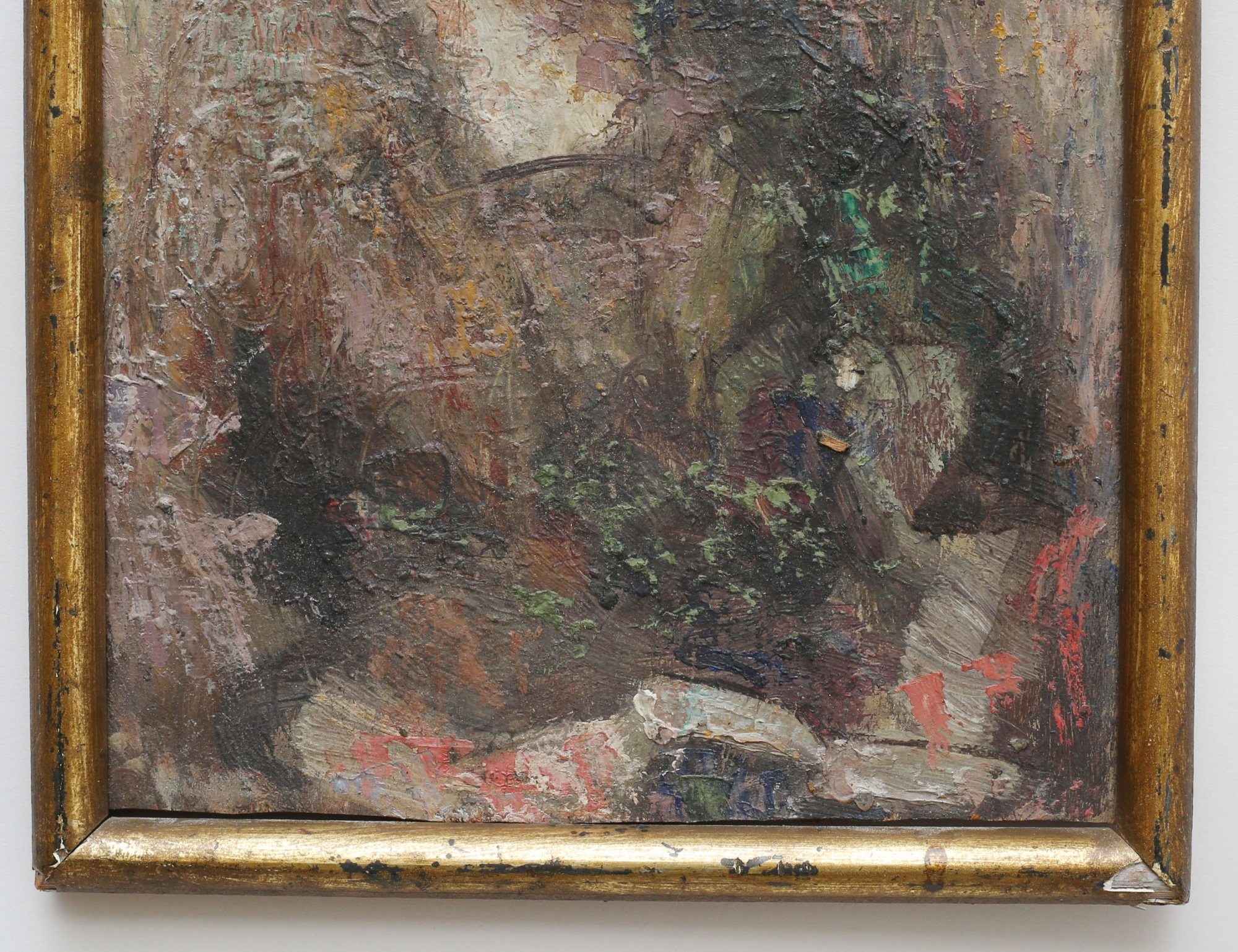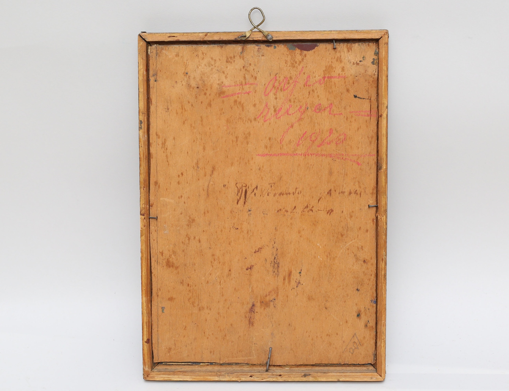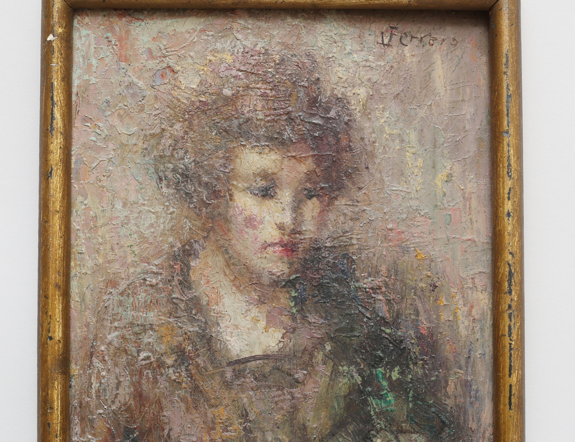 oljemålning på pannå, kvinnoporträtt, signerad, atergo anteckningar, 24x17