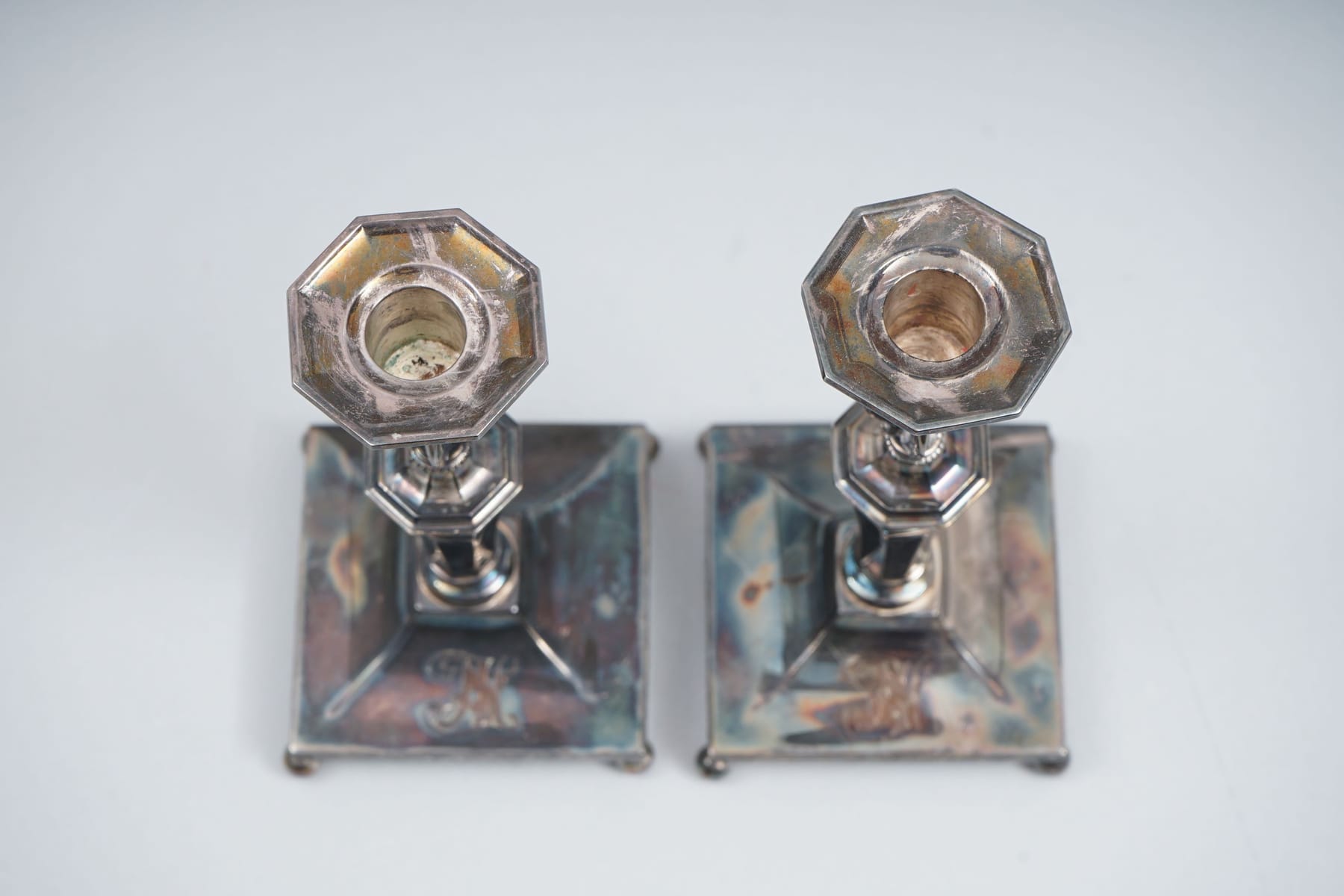 2 kpl kynttilänjalkoja, hopeaa