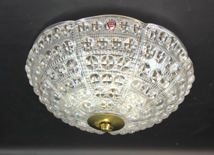 Carl Fagerlund, takplafond, glas/mässing, 3 ljuspunkter, Orrefors.