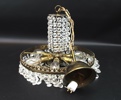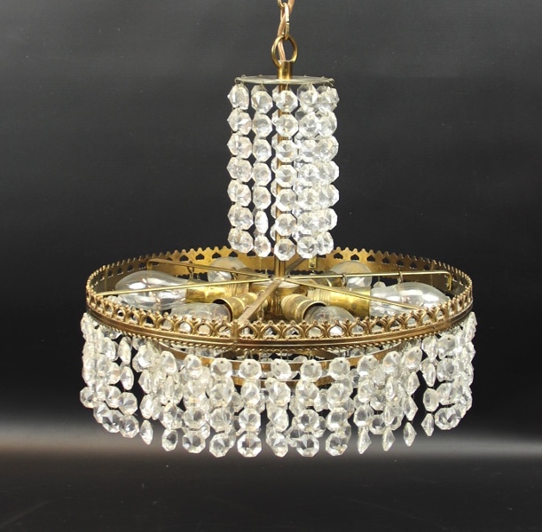 Bilder Takkrona med prismor, mässing/glas, 6 ljuspunkter, 1900-tal.