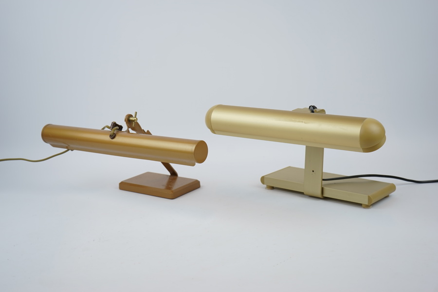 Pianolampor, 2 st, ställbara, gulmetall.