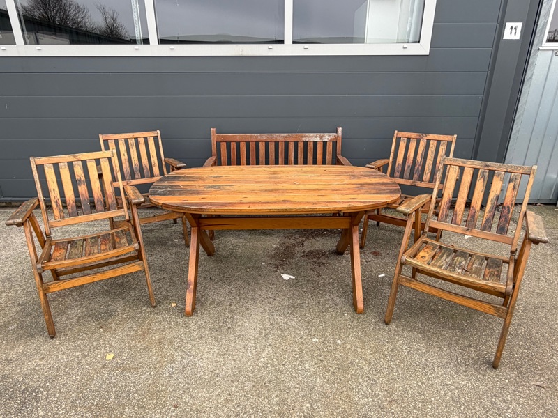 Bilder Trädgårdsgrupp, trä, hopfällbara stolar, KWA.