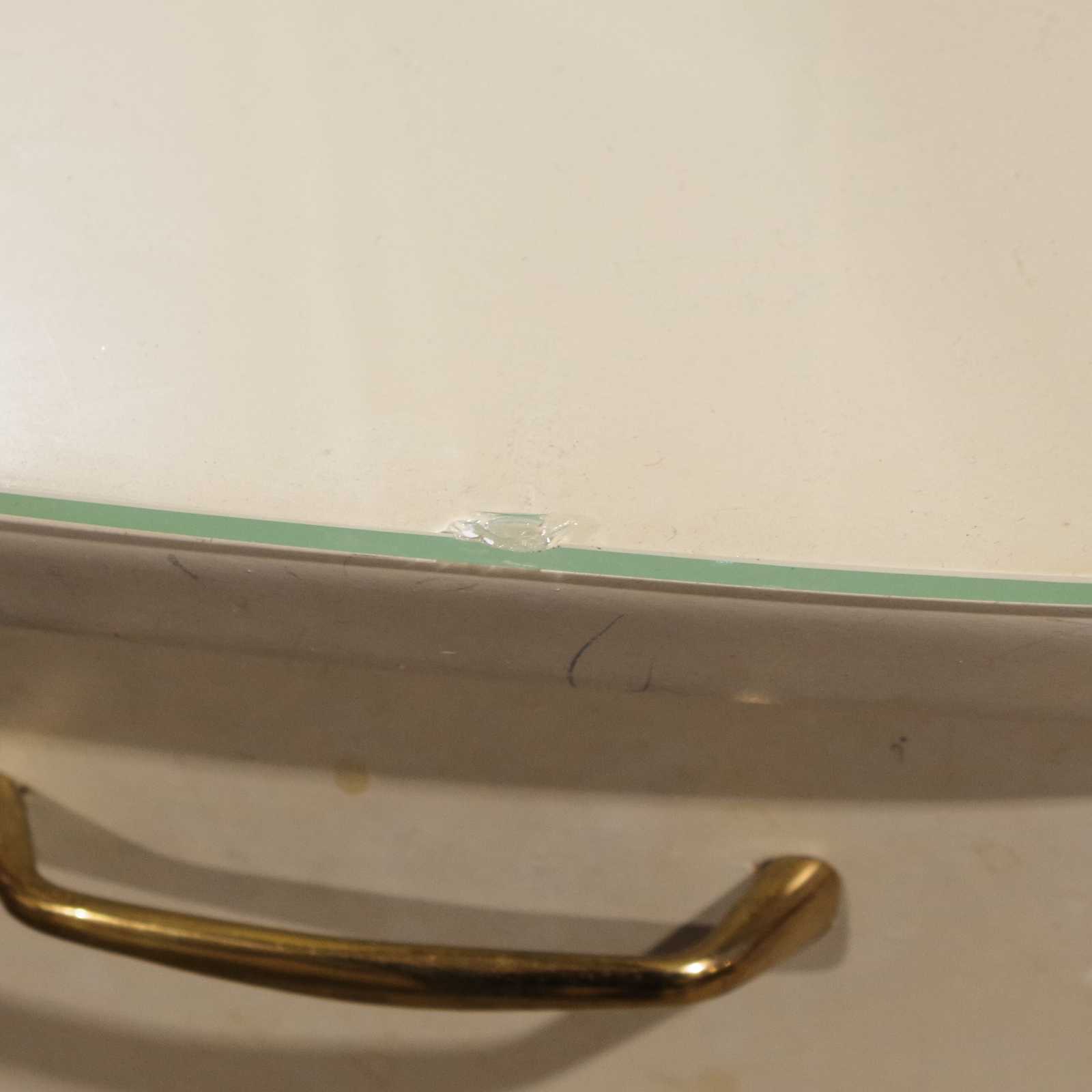 SMINKBORD omkring 1900-talets mitt. H:119x 84x 40cm. Aningen ranglig och nagg i glasskivan.