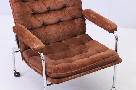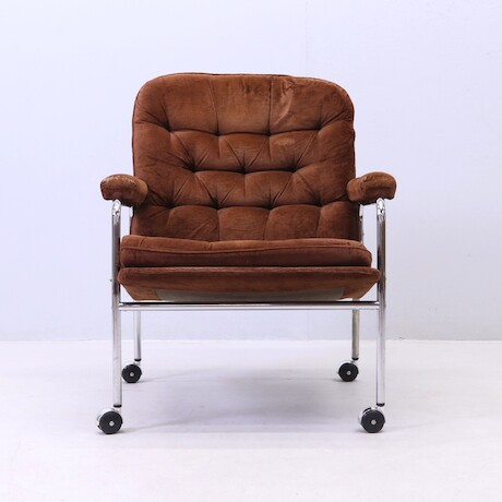 Bilder Fåtölj på hjul, 1970-tal, stomme i kromat stålrör, fast stoppad klädsel, bredd 63 cm