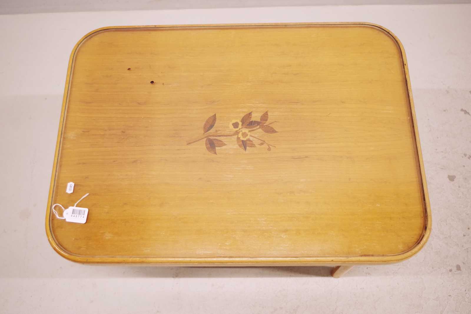 SIDOBORD intarsia, glasskiva, 1900 talets mitt. H:52x 70x 50cm (bruksslitage)