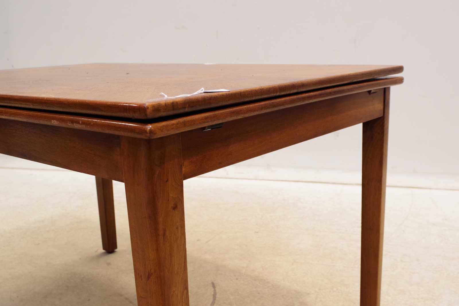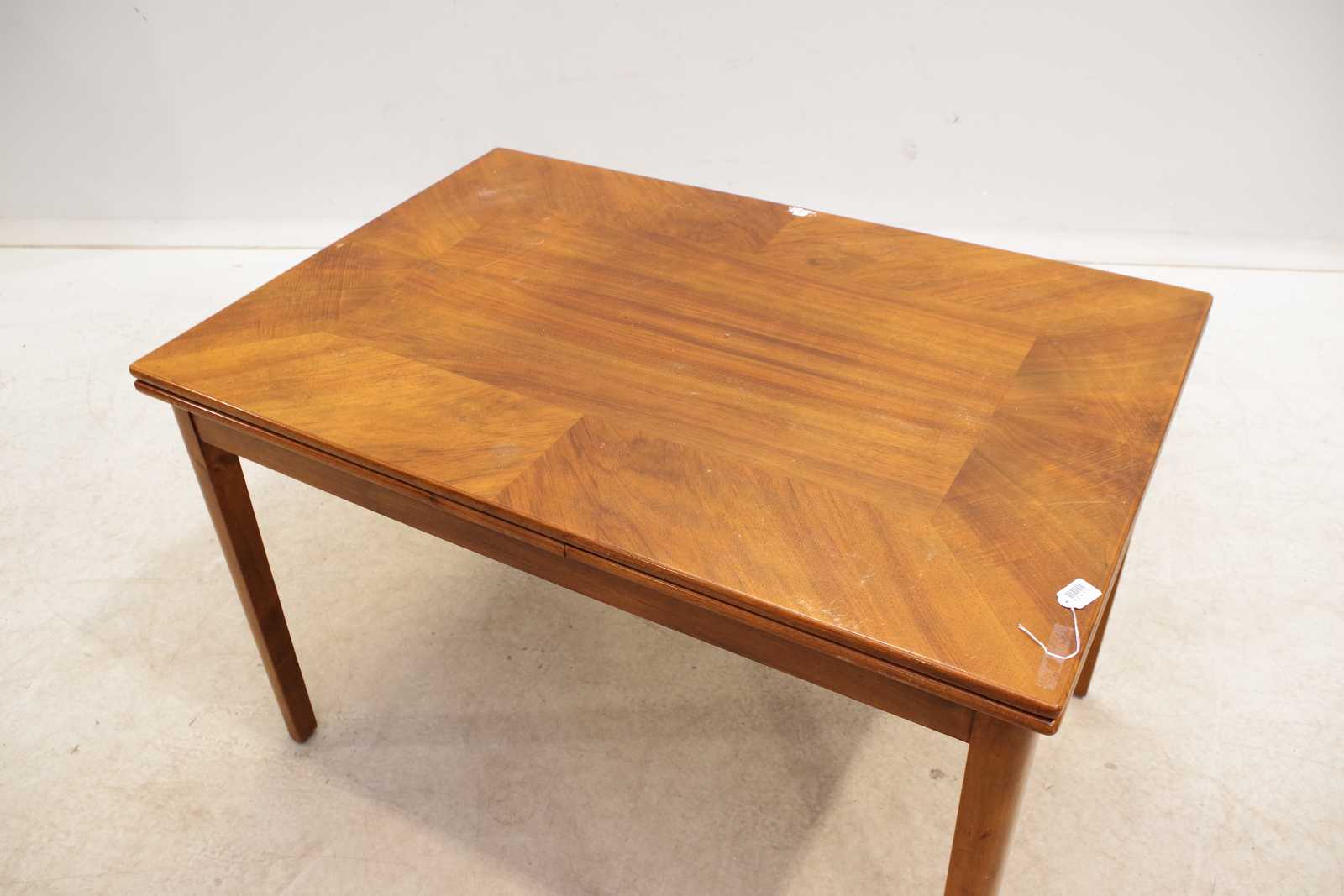 Auktioner MATBORD med iläggsskivor, ek. H: 77cm, B: 83cm, L: 123+52+52cm. Bruksslitage såsom repor och märken.