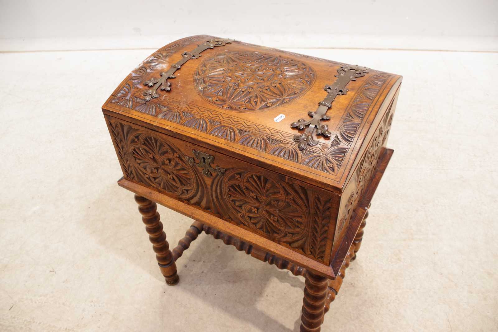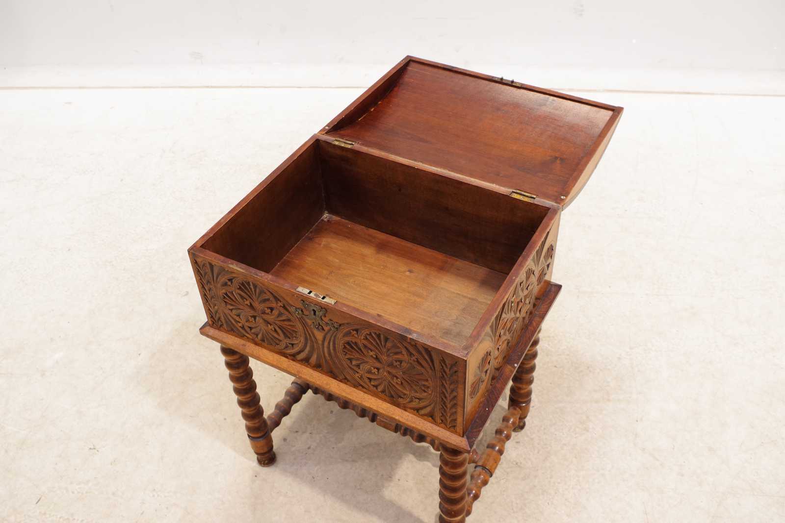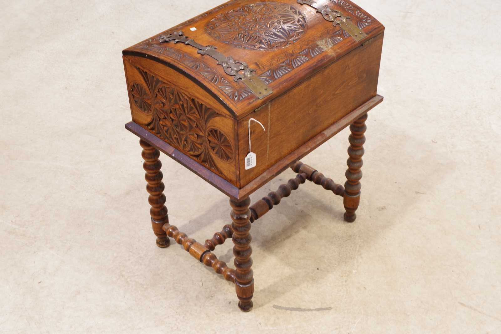 KISTA på benställning, skuren dekor. H:72x 53x 43cm
