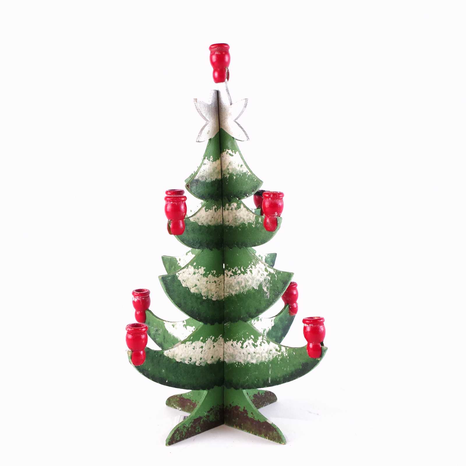 LJUSSTAKE äldre, trä , form av julgran. H:33,5cm.
