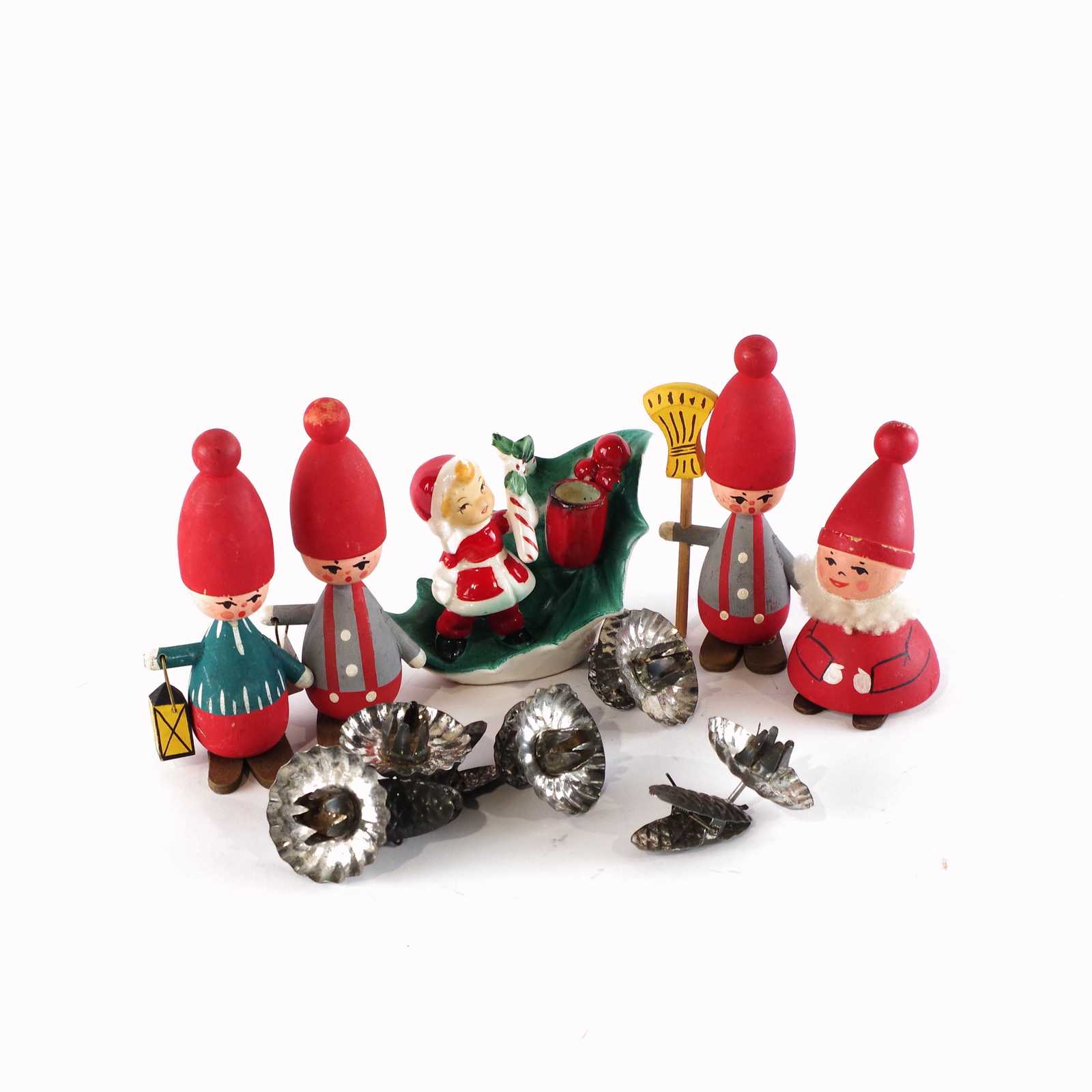 Bilder Parti JULSAKERbl.a. ljushållare äldre, plåt. H:12cm största.