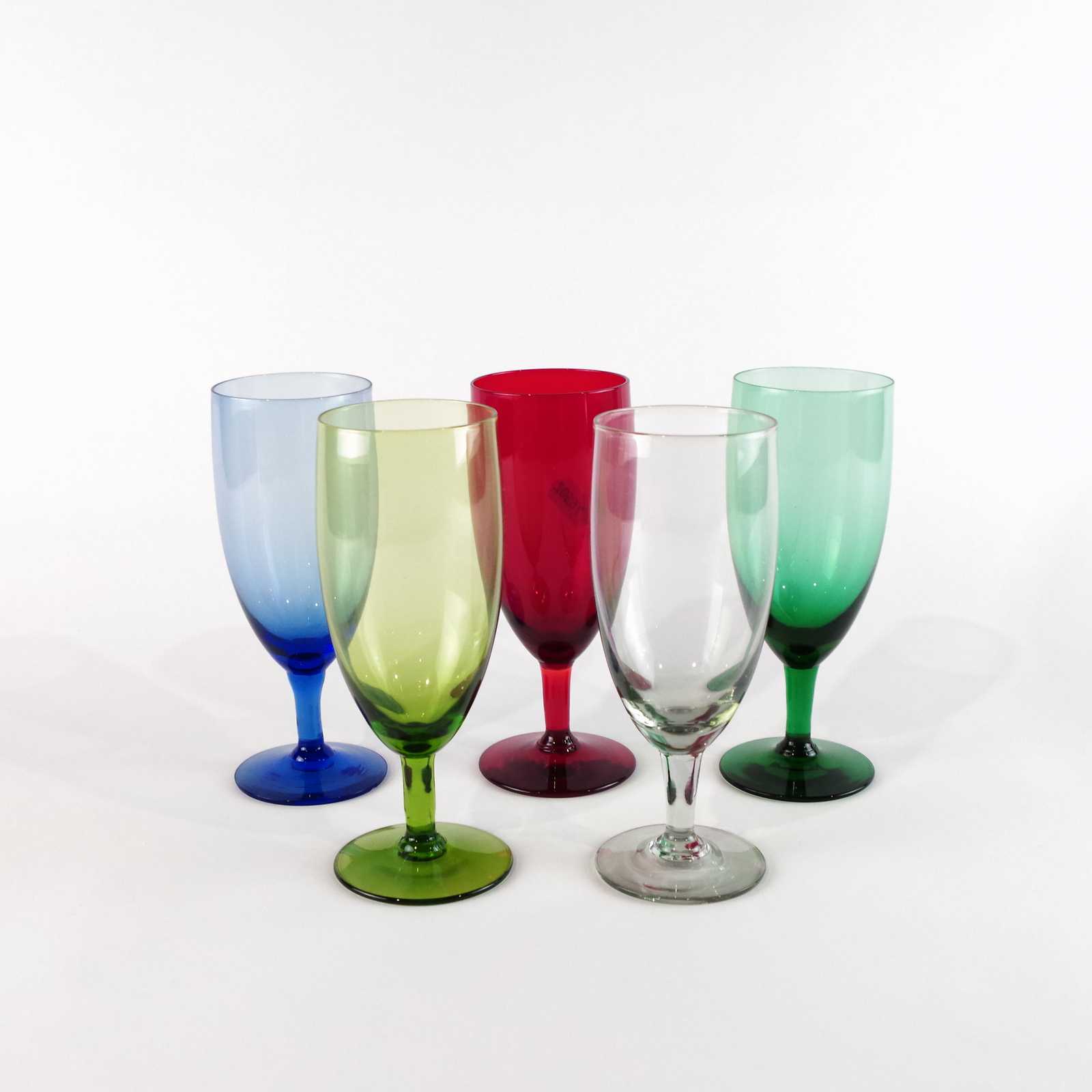 Bilder CHAMPAGNEGLAS 5st. H:15,5cm D:5,5cm. Monica Bratt, "Lorry". (blåa med minimalt fotnagg)