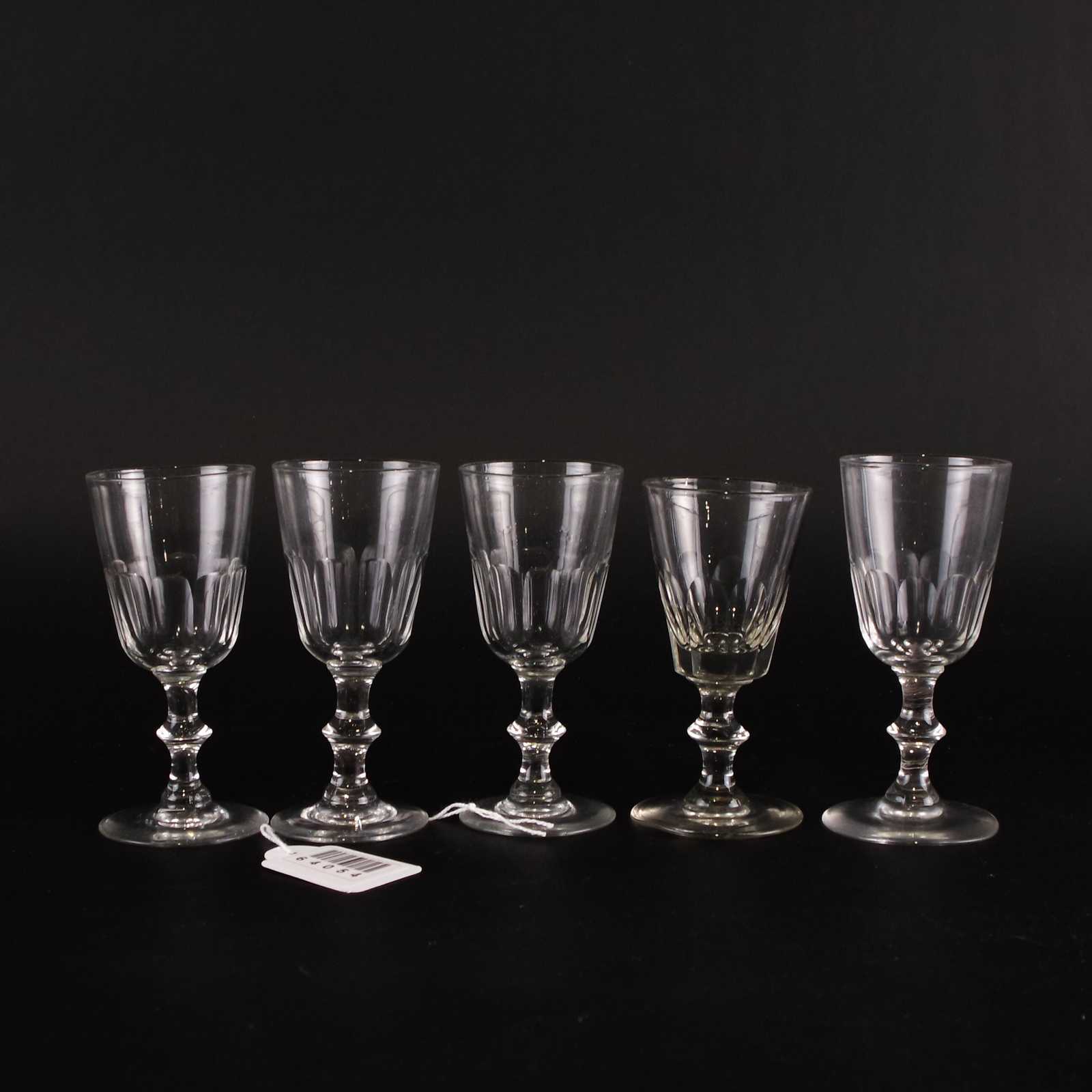 SNAPSGLAS 5st snarlika. 18-1900 tal. H:10cm D:4,5cm.