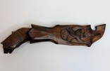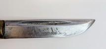 Bilder Finsk Kniv med snidad slida av trä och skaft i form av en varg
