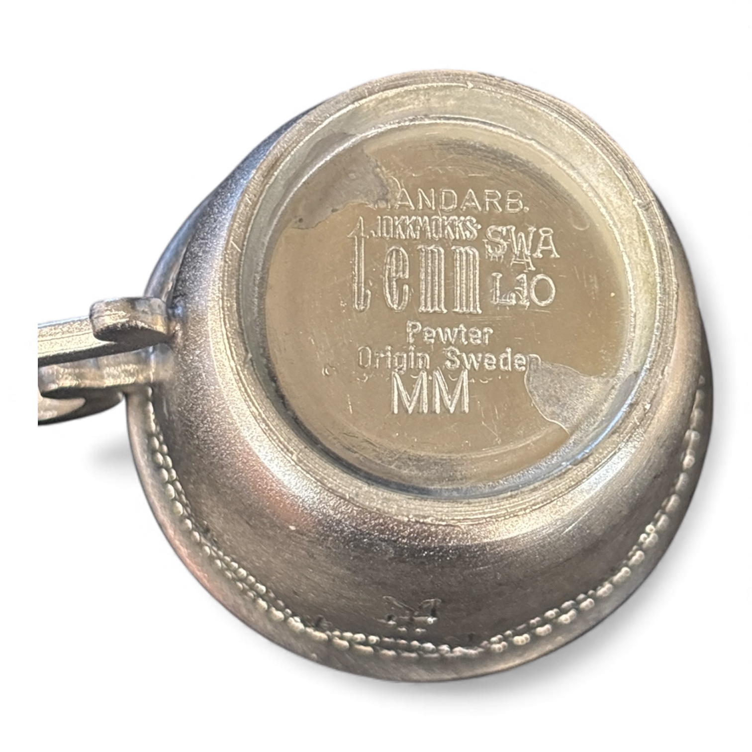Stämplade undertill med:“HANDARBETE – TINN – JOKKMOKK – SWÅ H10”