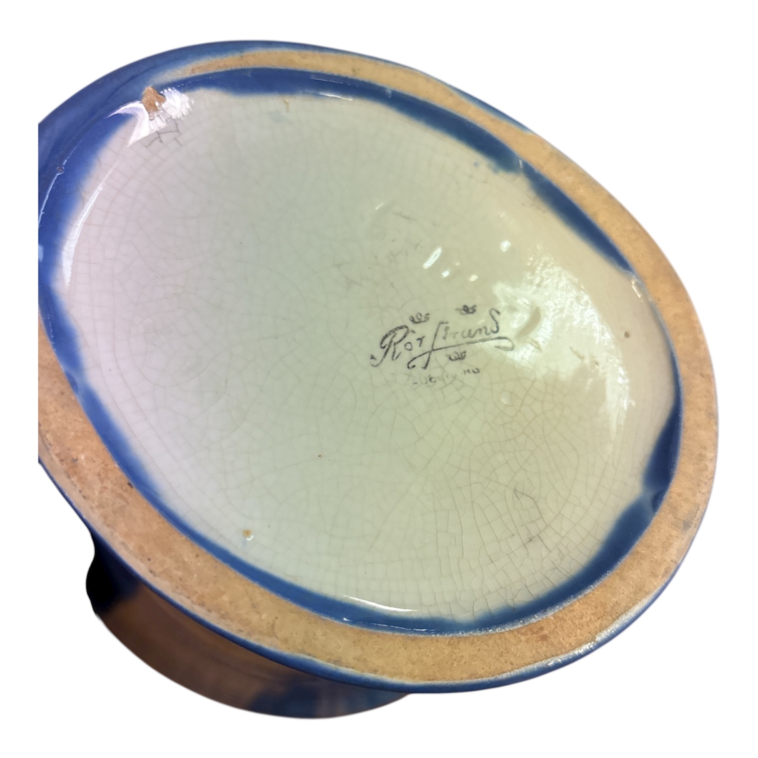 Elegant blå vas från Rörstrand, stämplad undertill. Klassisk design med guld-detaljer och dubbla handtag – en riktig blickfångare!Medföljer även en vit keramikfigur i modern stil, vacker som inredningsdetalj på hylla eller sideboard.
