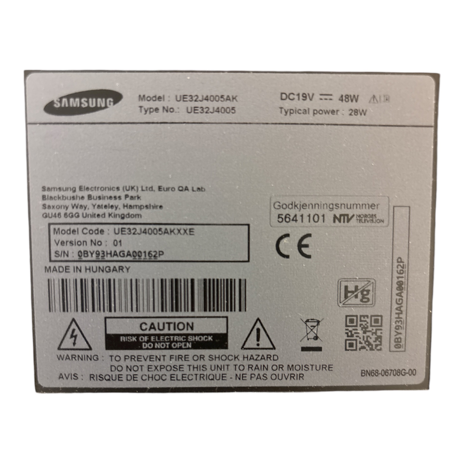 Samsung 32” LED-TV – modell UE32J4005AK
