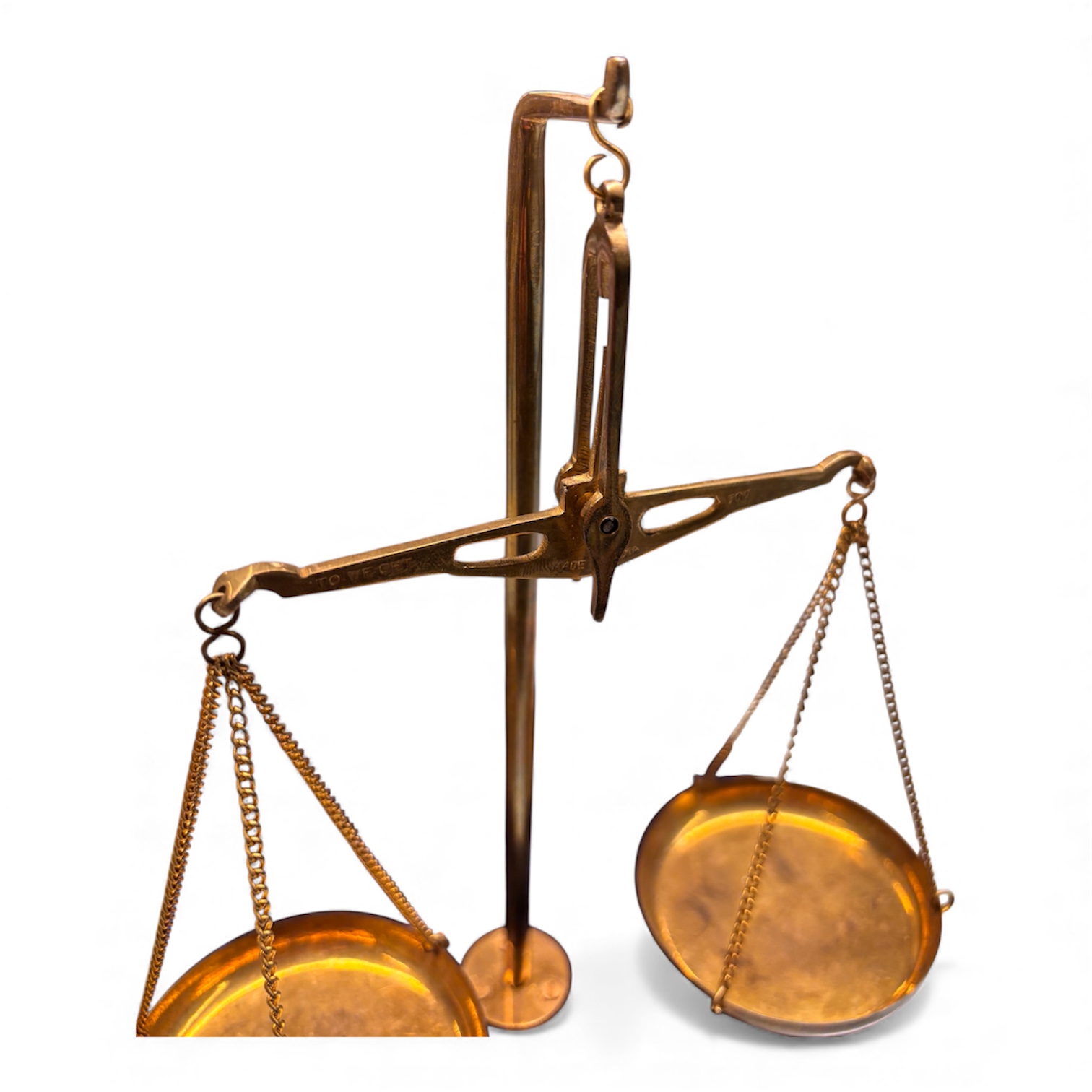 Vintage precisionsvåg i mässing med vikter – i originaletui