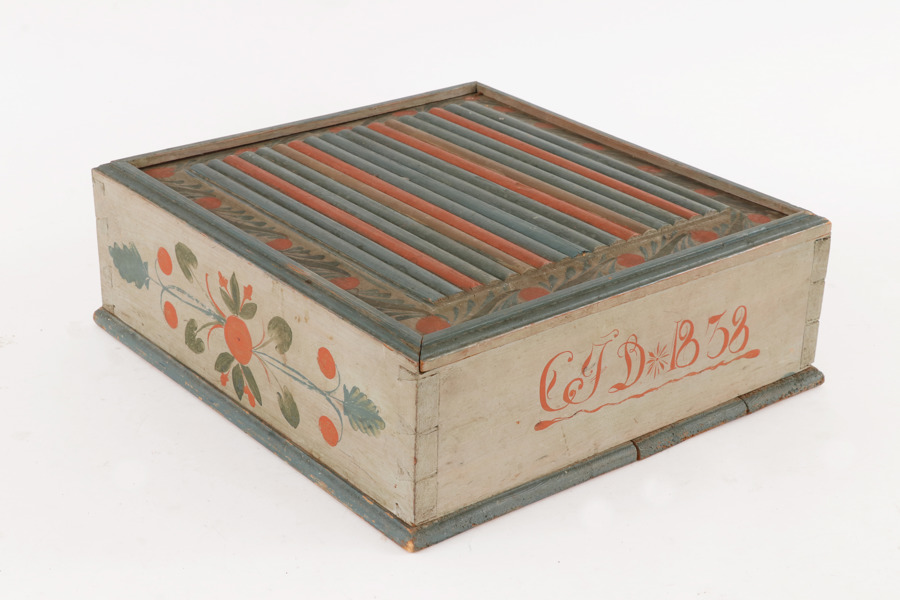 Bilder Låda med skjutlock, allmoge, Hälsingland, daterad 1838