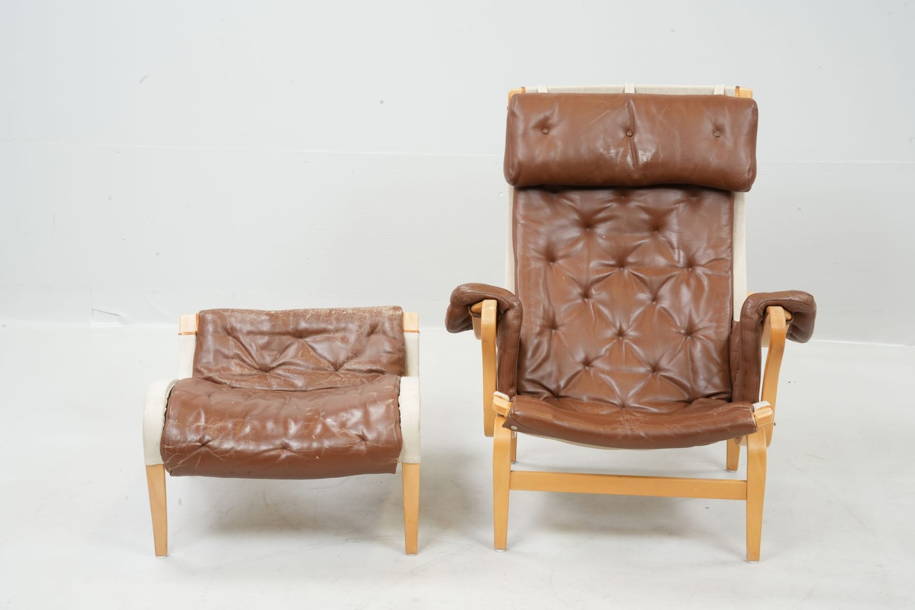 Bilder BRUNO MATHSSON (1907-1988), fåtölj med fotpall, "Pernilla", Dux