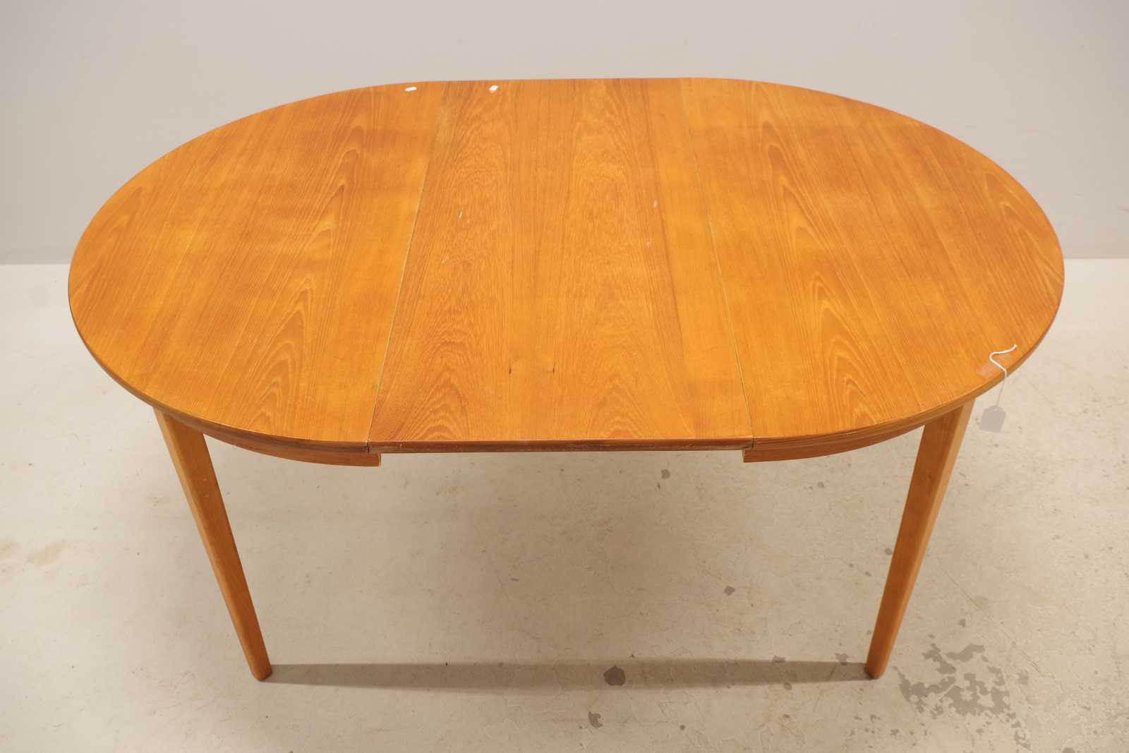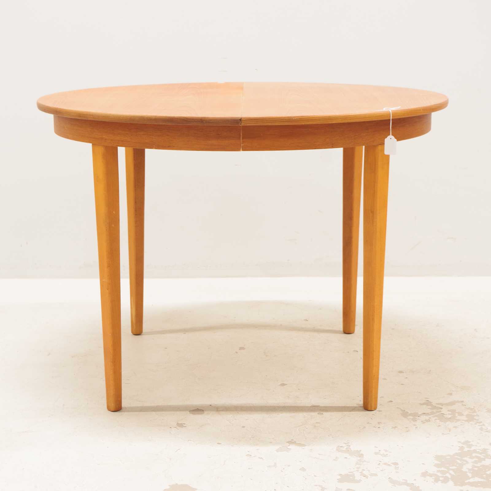 Bilder MATGRUPP, 4st stolar & bord med ilägg, H: 74cm D: 105xm + ilägg: 45cm (bruksslitage)
