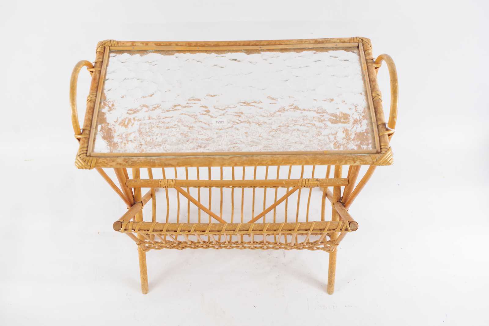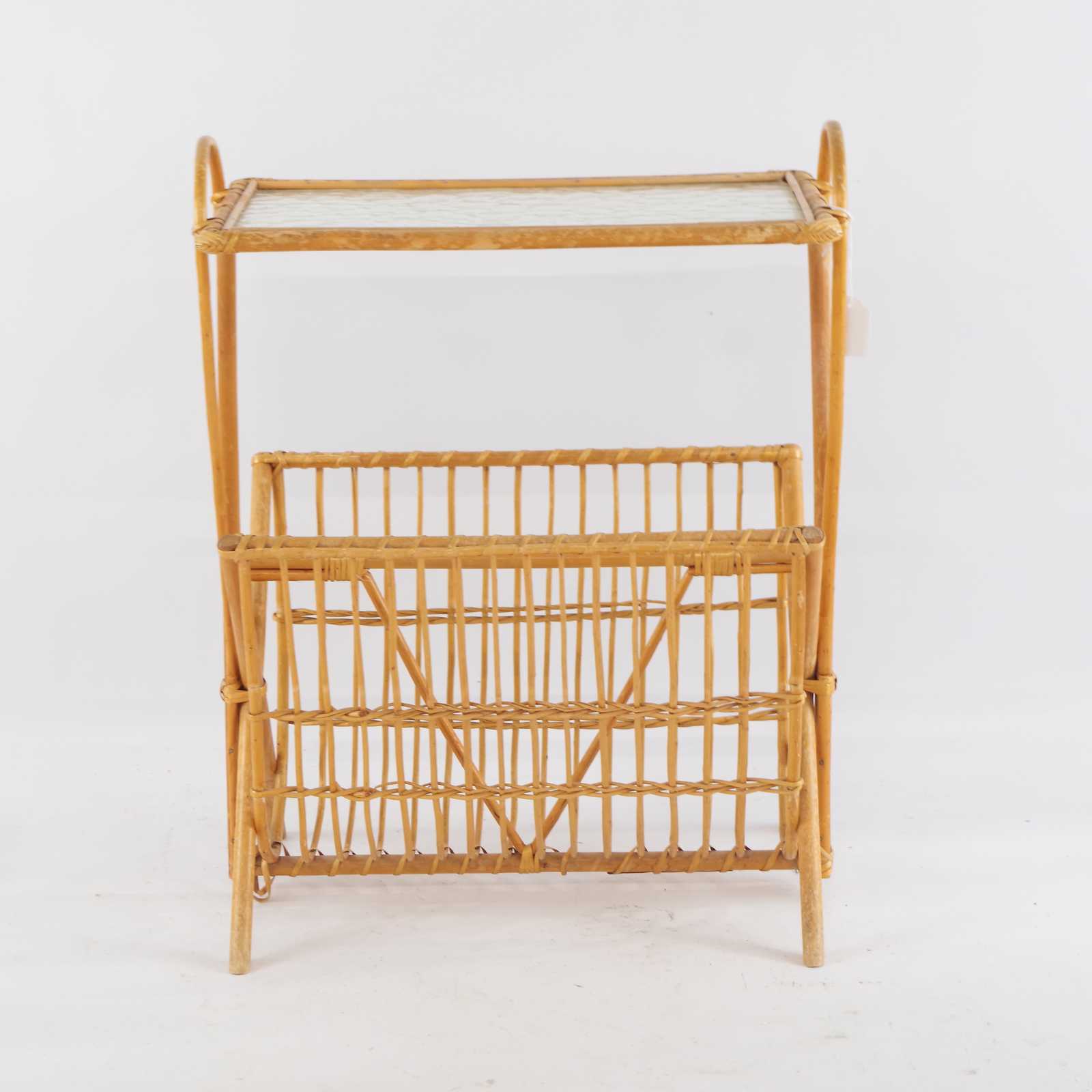 SIDOBORD med tidningsställ, glasskiva, rotting, H: 53x 44x 24cm