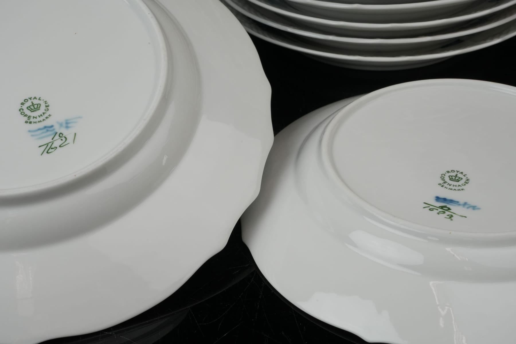 Bilder MATTALLRIKAR, 6 st, samt FÖRRÄTTSTALLRIKAR, 12 st, "Blå blomst", Royal Copenhagen