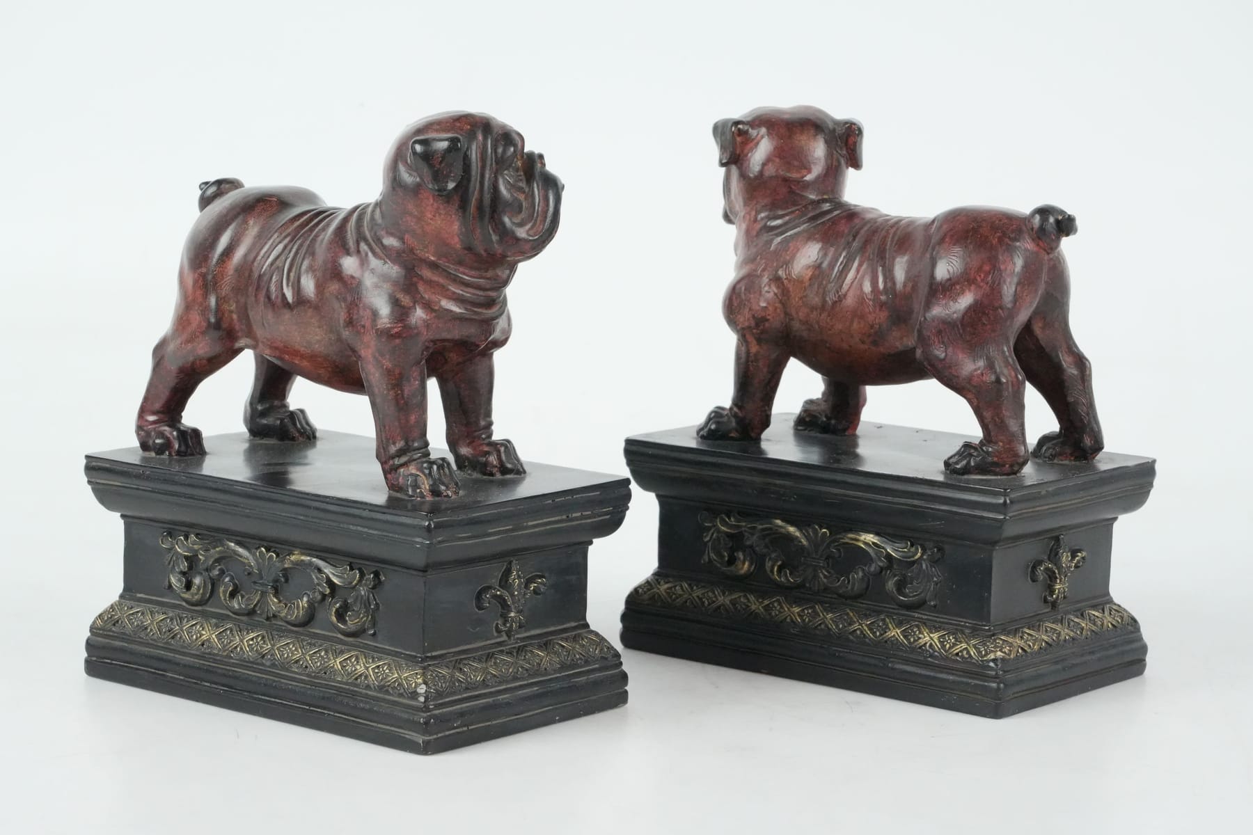 BOKSTÖD / DEKORATIONER, ett par, Engelsk Bulldog, gjuten massa, 2000-tal