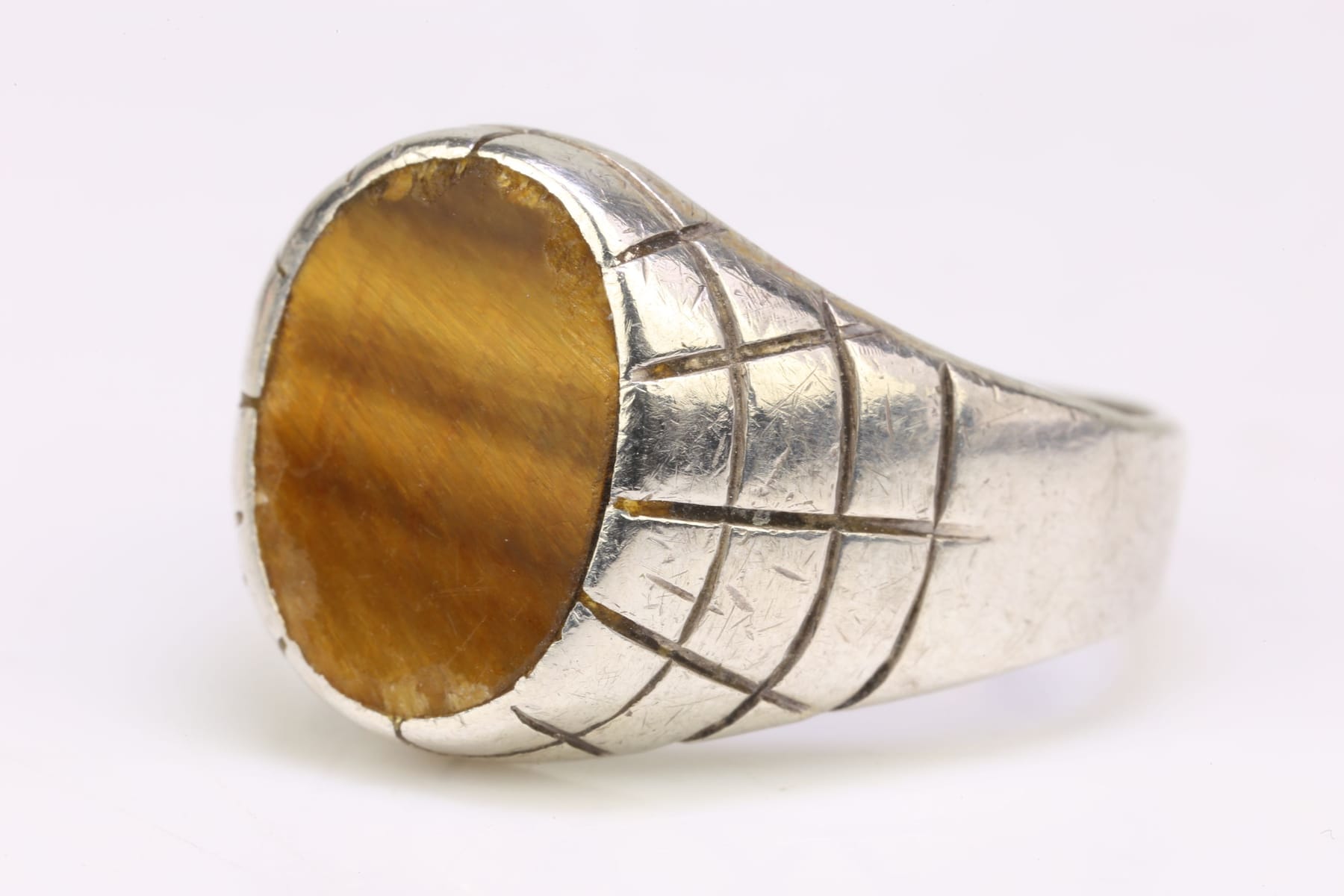 KLACKRING med planslipad tigeröga, silver, Mexiko, ca 13,13 g