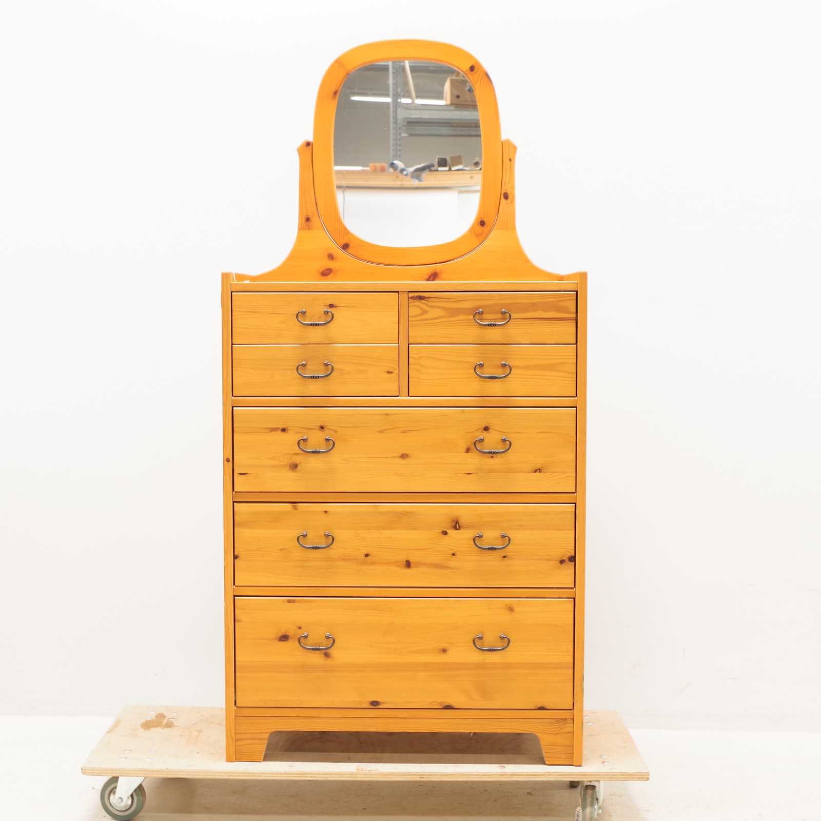 Bilder BYRÅ med spegelkrön, 7 lådor, furu, H: 105x 76x 41cm utan spegel, total höjd: 159cm