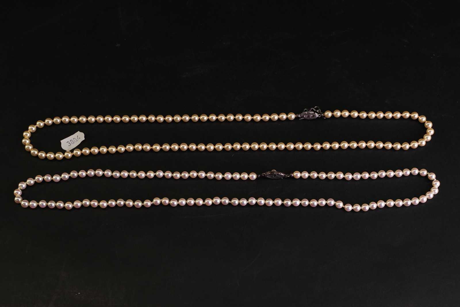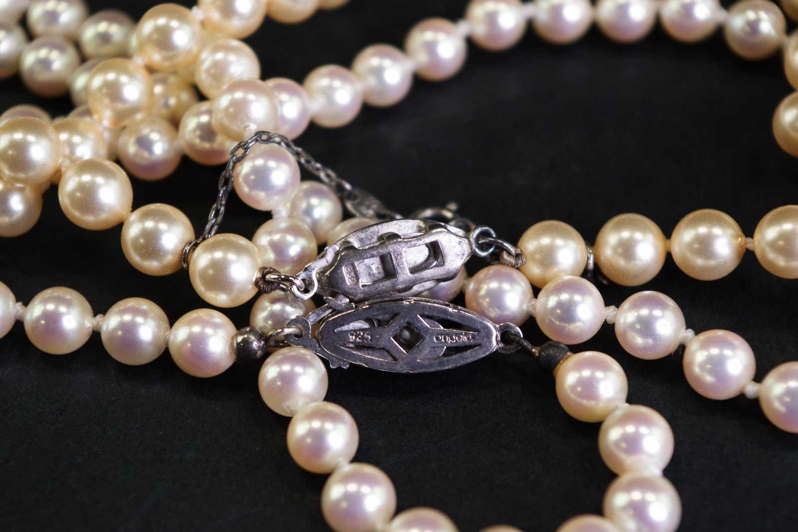 Auktioner Guld, Silver & Smycken PÄRLHALSBAND med silverlås Längsta L:70 cm & PORTMONNÄ med pärlbroderi