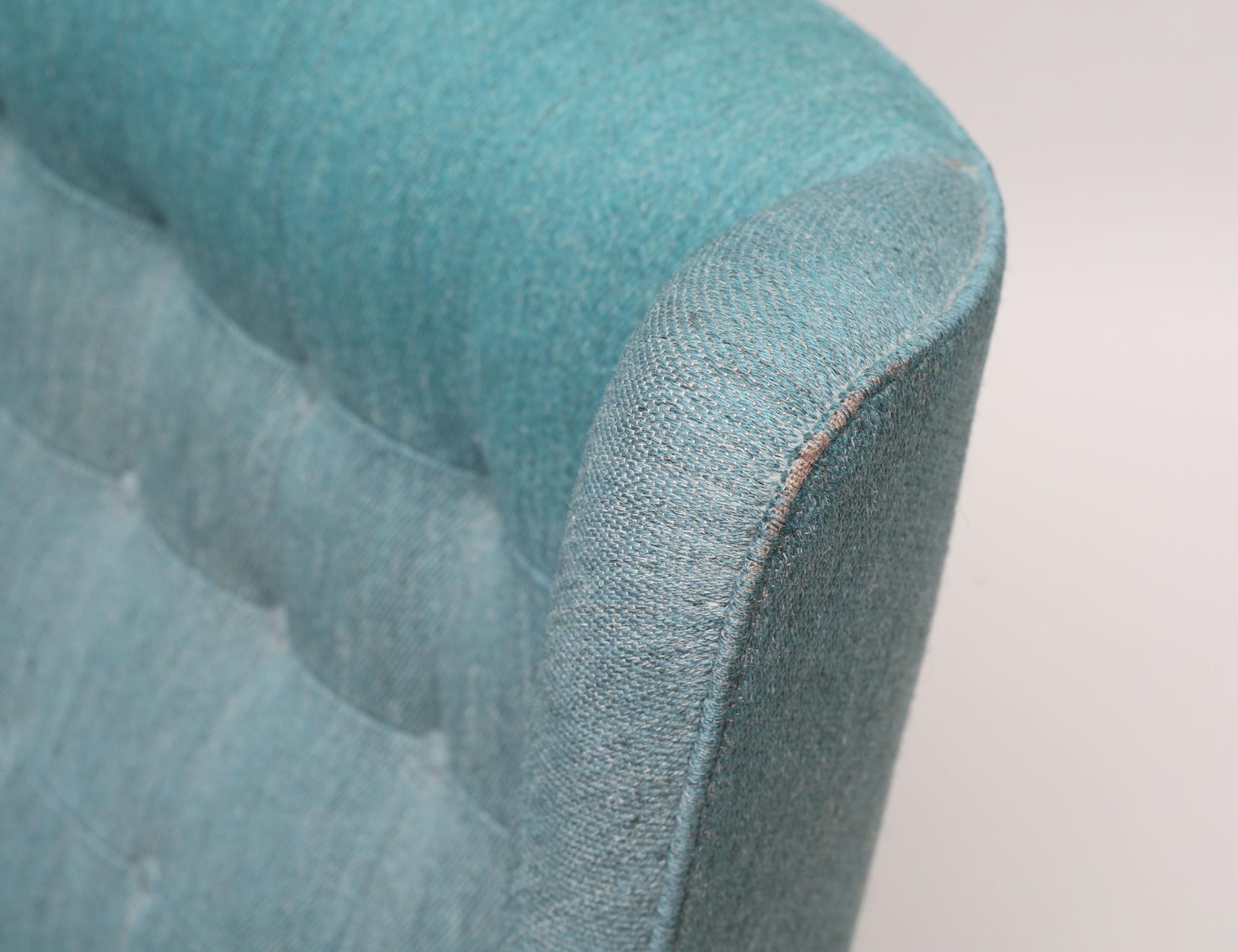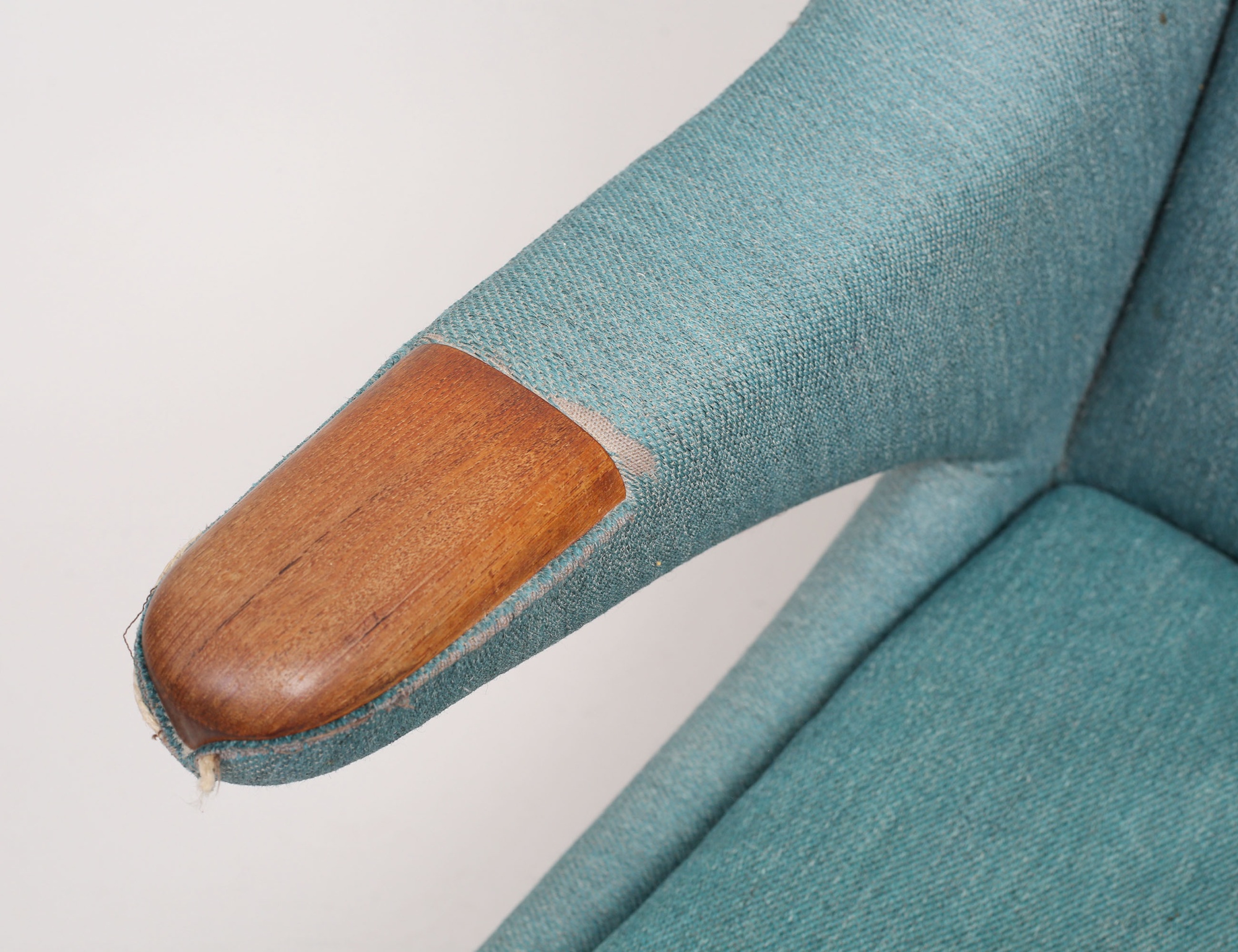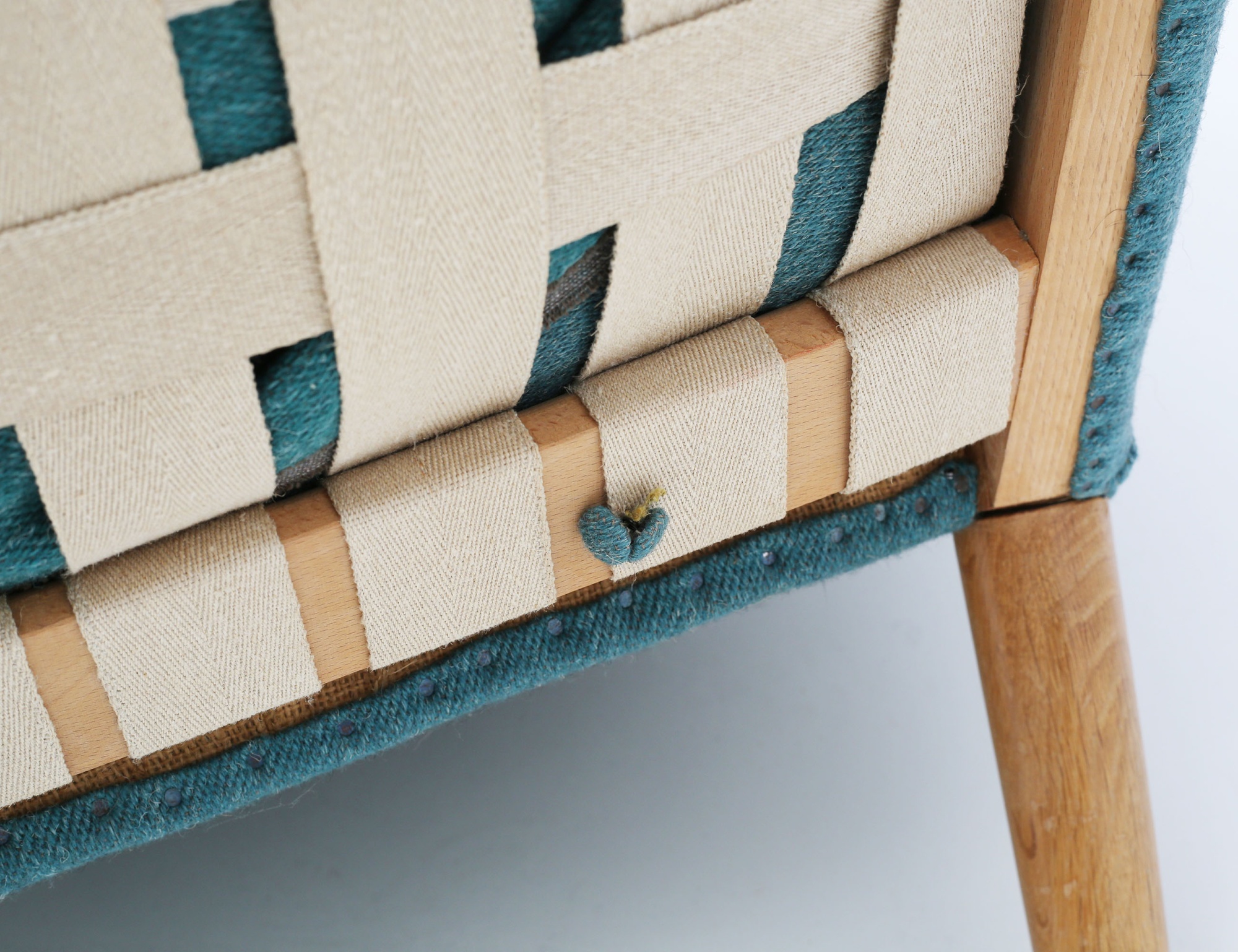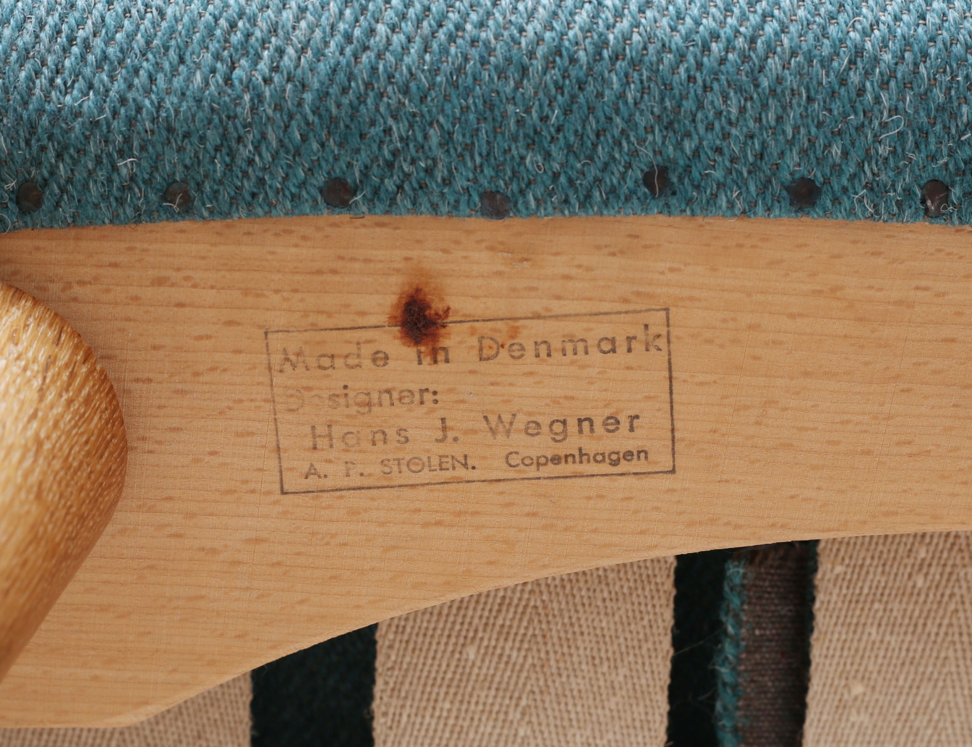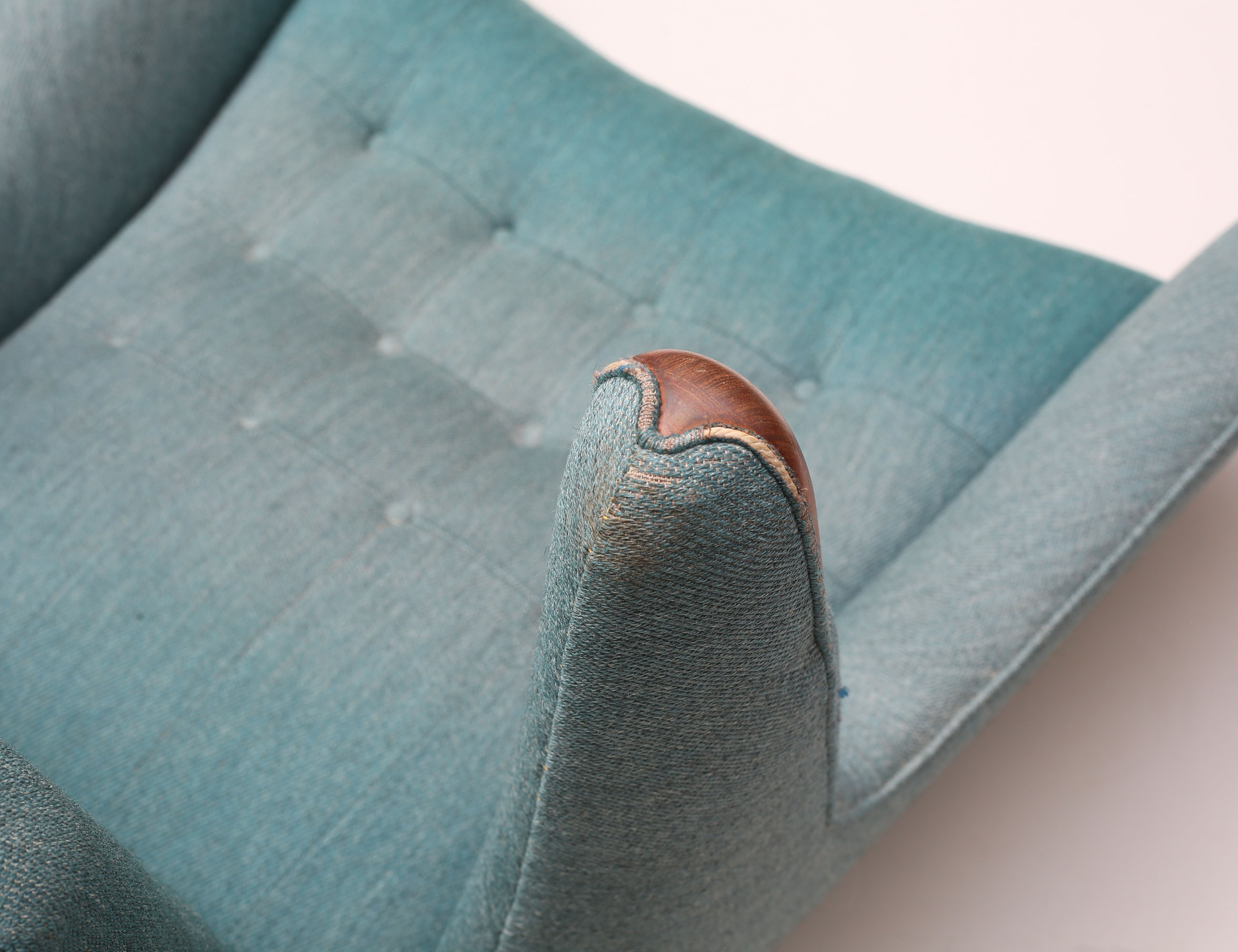 A.P. stolen Danmark 1900-talets mitt, brännstämpel, höjd 98, bredd 78, djup 90 (klädsel med slitage/fläckar, blekt)