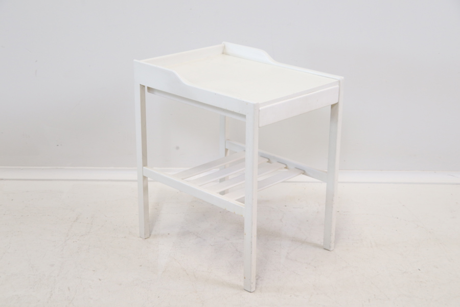 Bilder Bertil Fridhagen, sängbord med låda, vitlackerad trä, Bodafors, 1900-talets mitt.