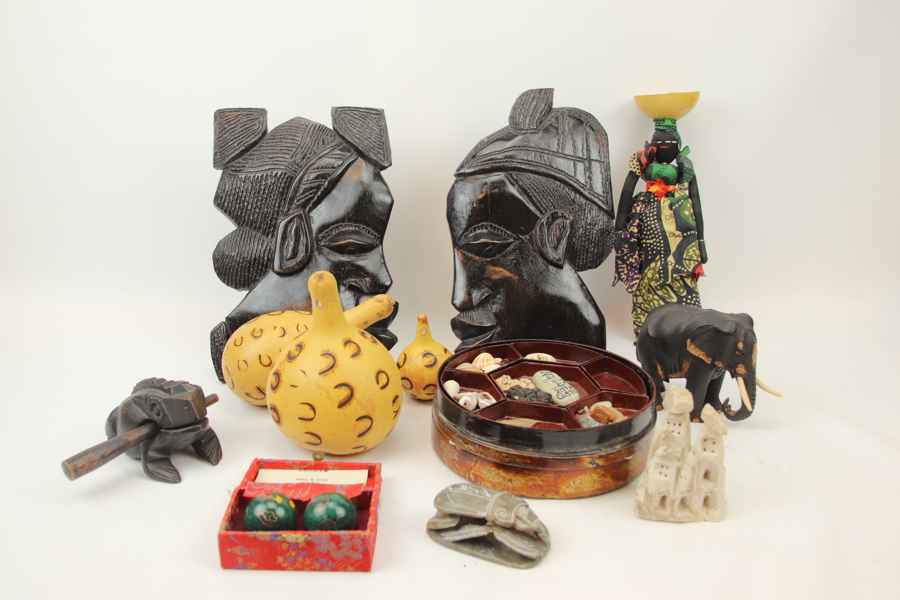 Väggskulpturer m.m, 12 delar, olika material, Asien/Afrika.