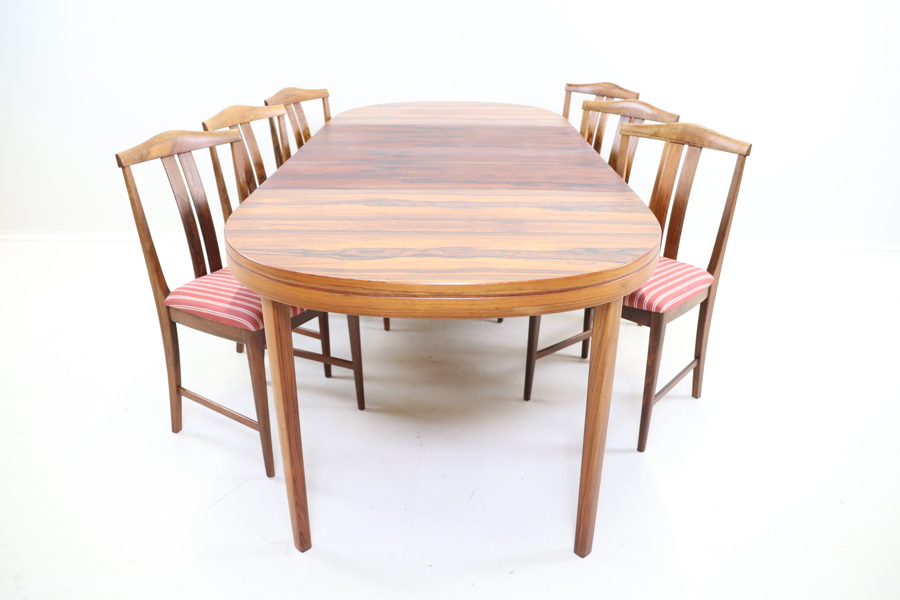 Matbord och 6 stolar, jakaranda, Skaraborgs Möbelindustri, Tibro.