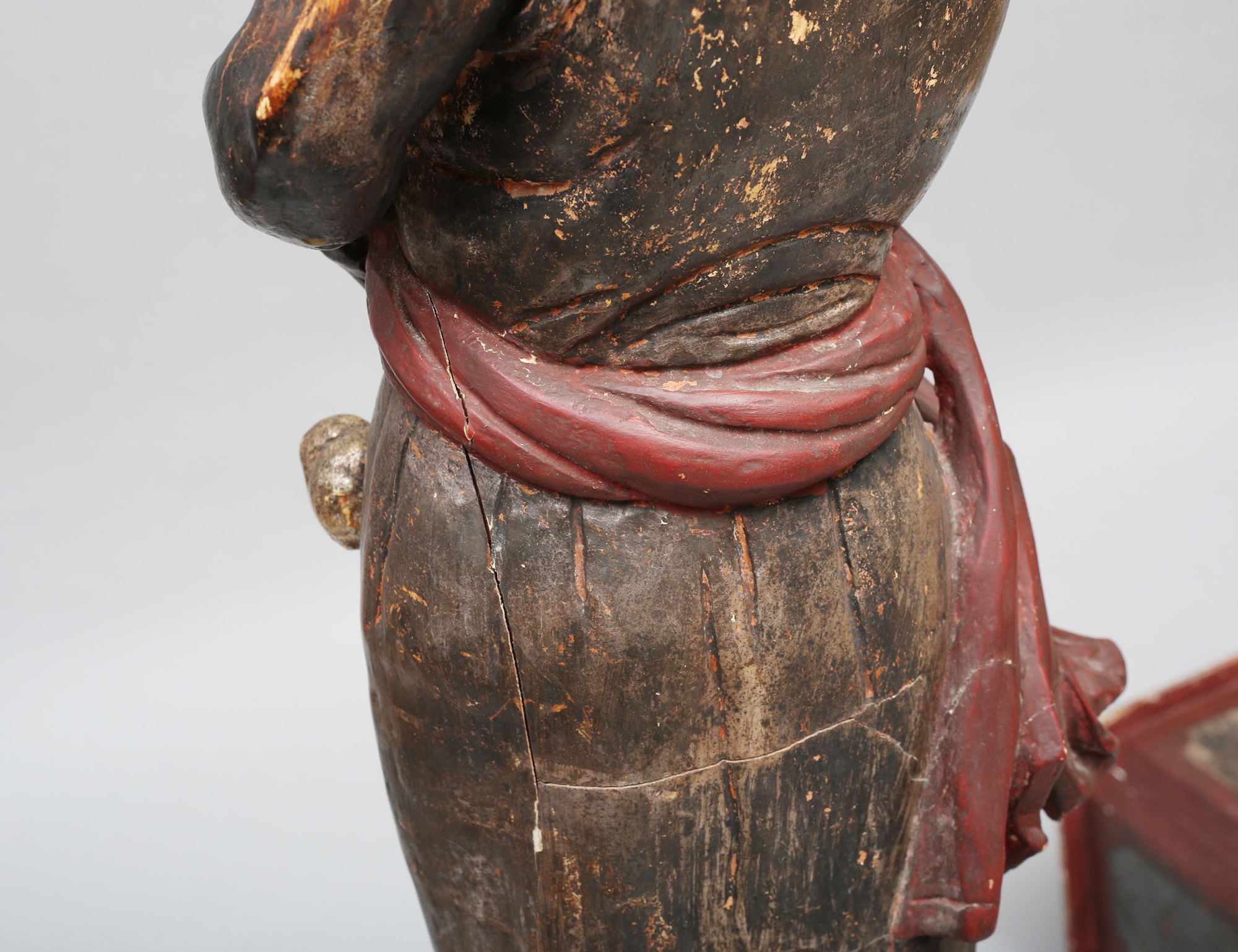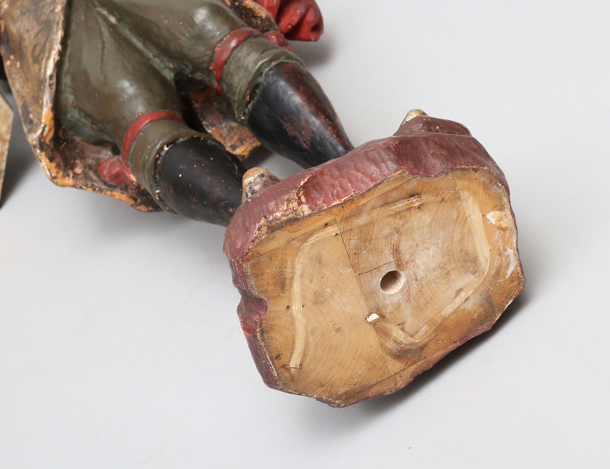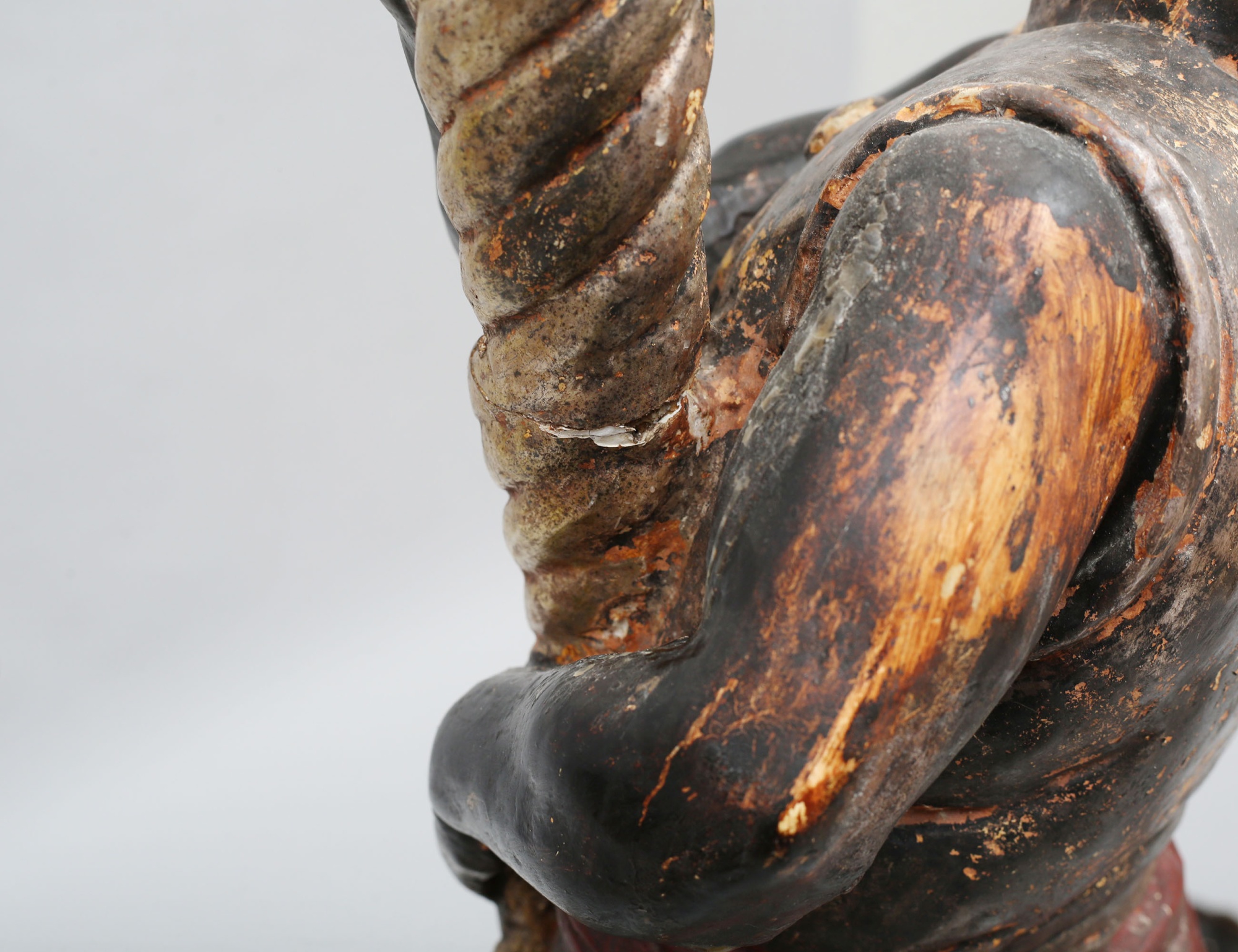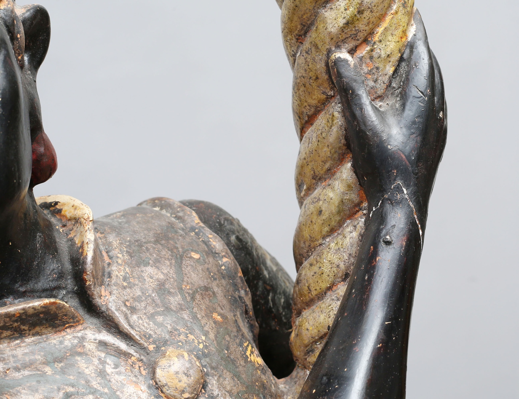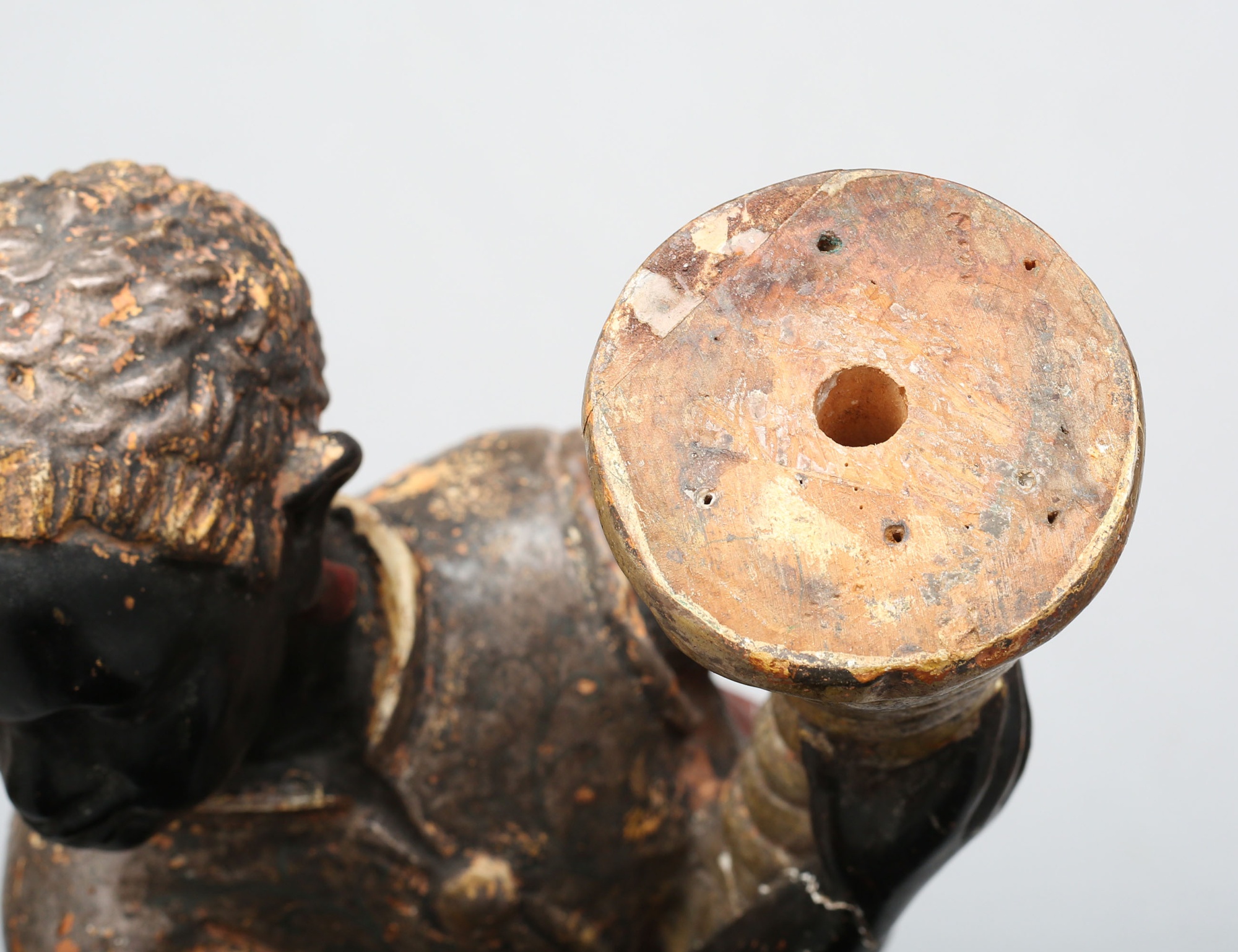 fackelbärare i form av morianer, skulpterat förgyllt och polykromt bemålat trä med gipsgrundering, monterade på oktagonalt fundament, höjd 153 ( dekorbortfall, sprickor, en arm med bräckage)