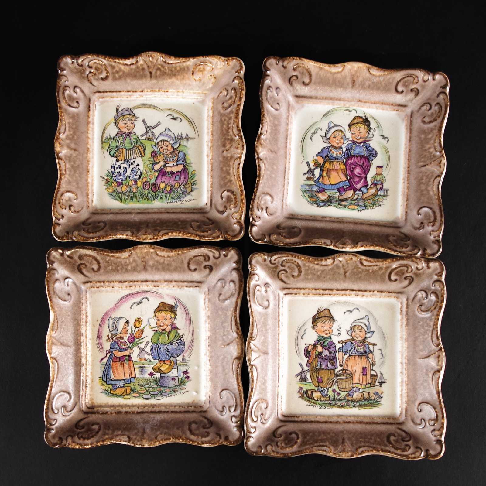 Bilder VÄGGPRYDNADER 4st W.Germany, porslin. 11,5x11,5cm.