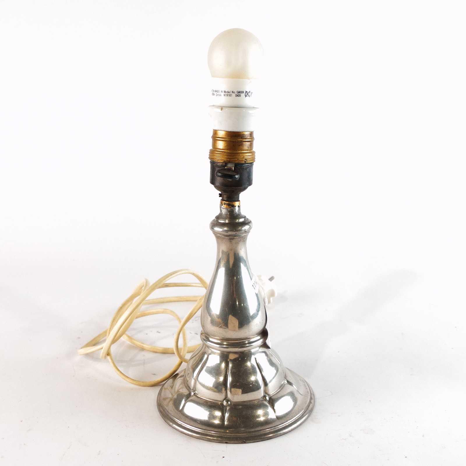BORDSLAMPA tenn. 1900 talets första hälft. H:38cm.