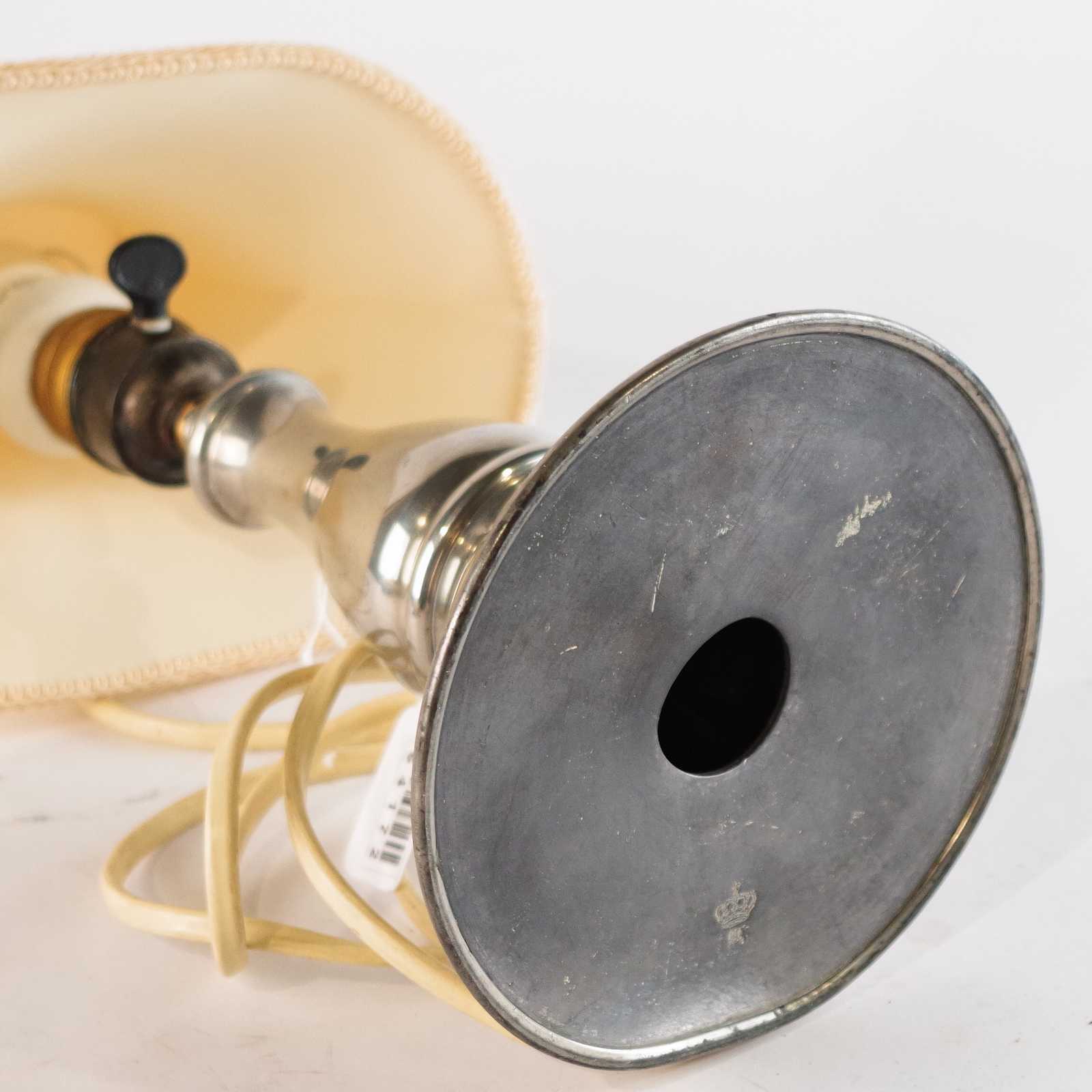 Bilder BORDSLAMPA tenn. 1900 talets första hälft. H:38cm.