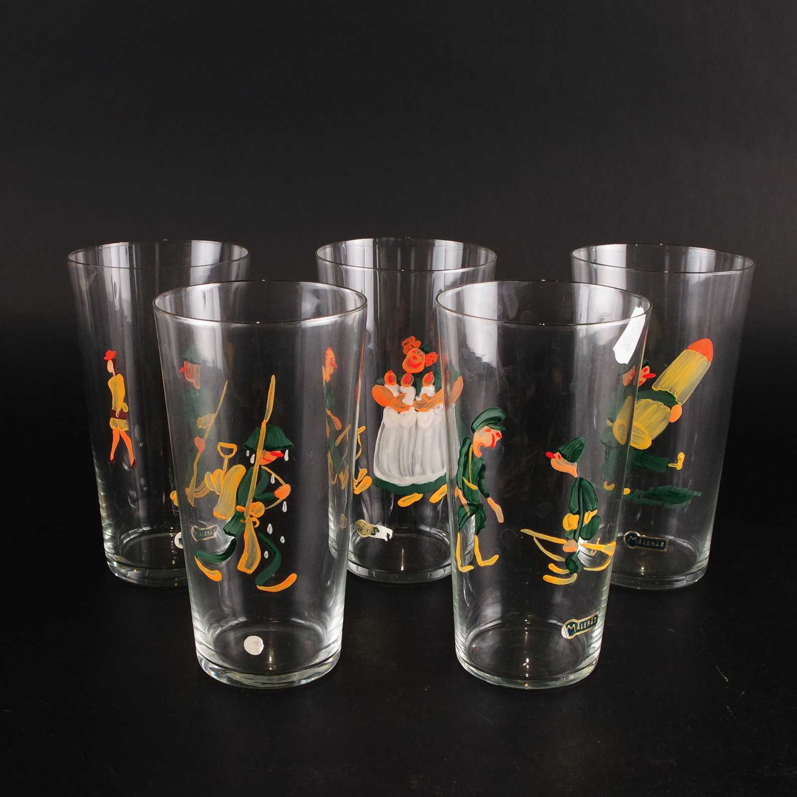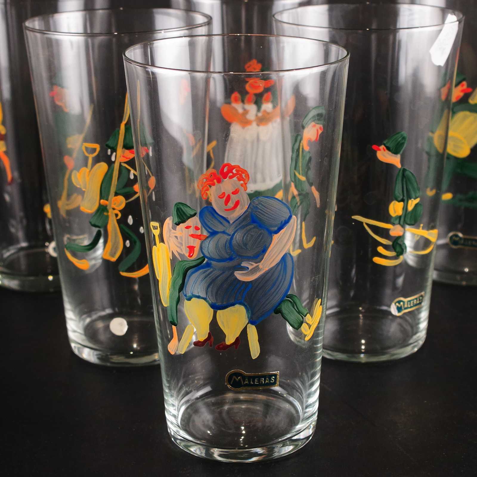 GLAS 6st äldre, handmålade, Målerås. H:15cm D:8cm.