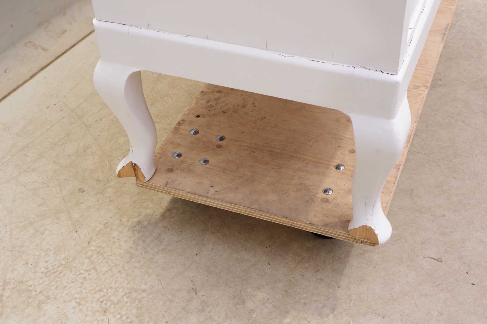 SKÄNK bemålad, 1900-talets första hälft. L: 124cm, D: 56cm, H: 105cm. OBS skadad på två ben, lösa delar finns kvar.