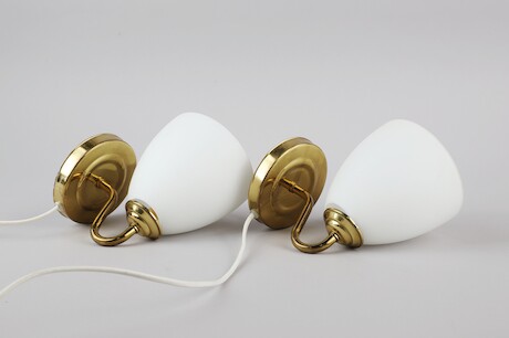 Vägglampor/uplights ett par, ABO Randers Danmark, mässing & glas, H = ca20